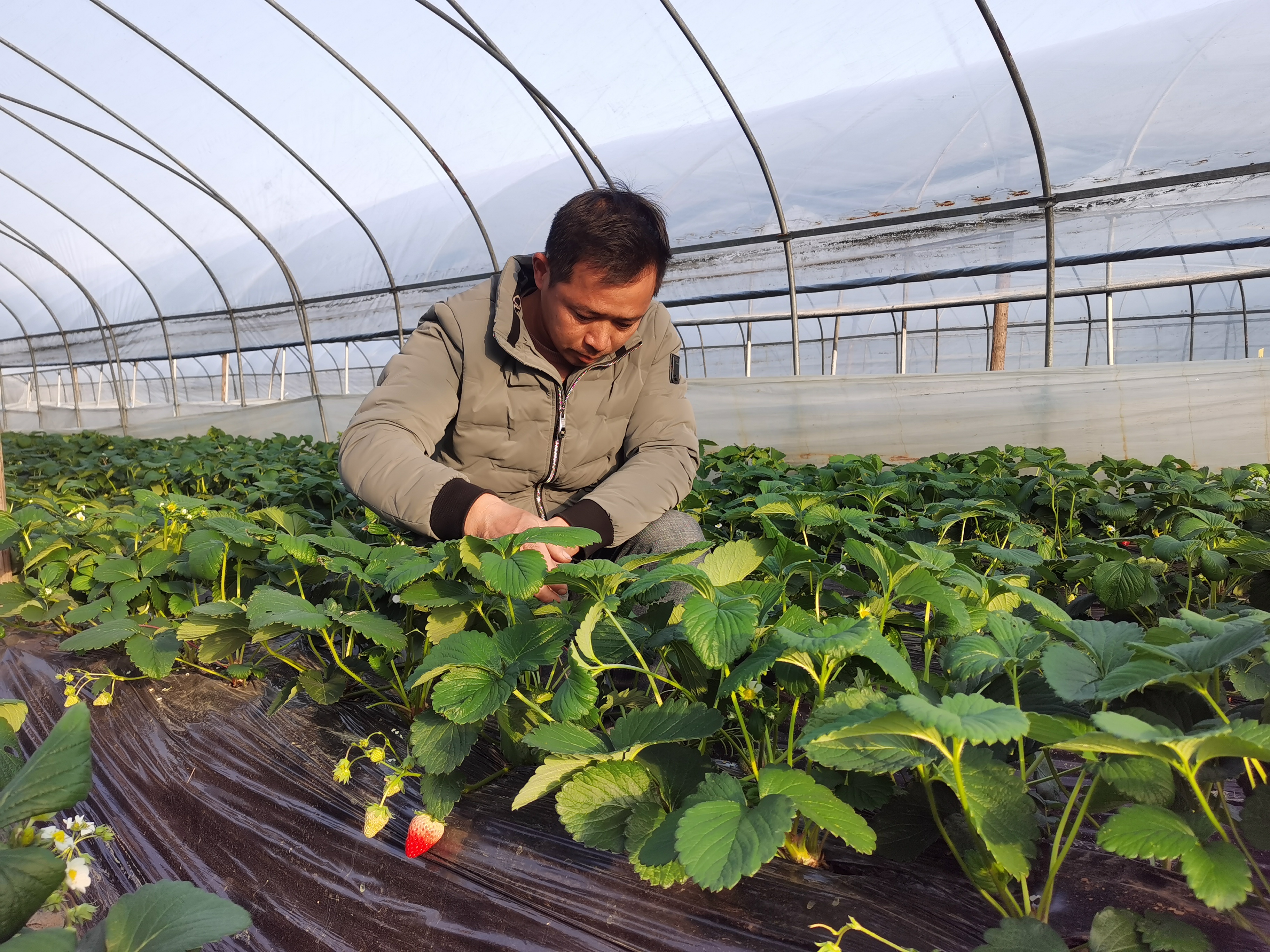 暖阳下,基地里,工人师傅忙着搭建高标准大棚,现场呈现出一派热火朝天的建设景象。得益于涉农部门“两强一增”计划的实施,今年,周伟又新添了6亩高标准大棚,草莓种植基地进一步扩大。