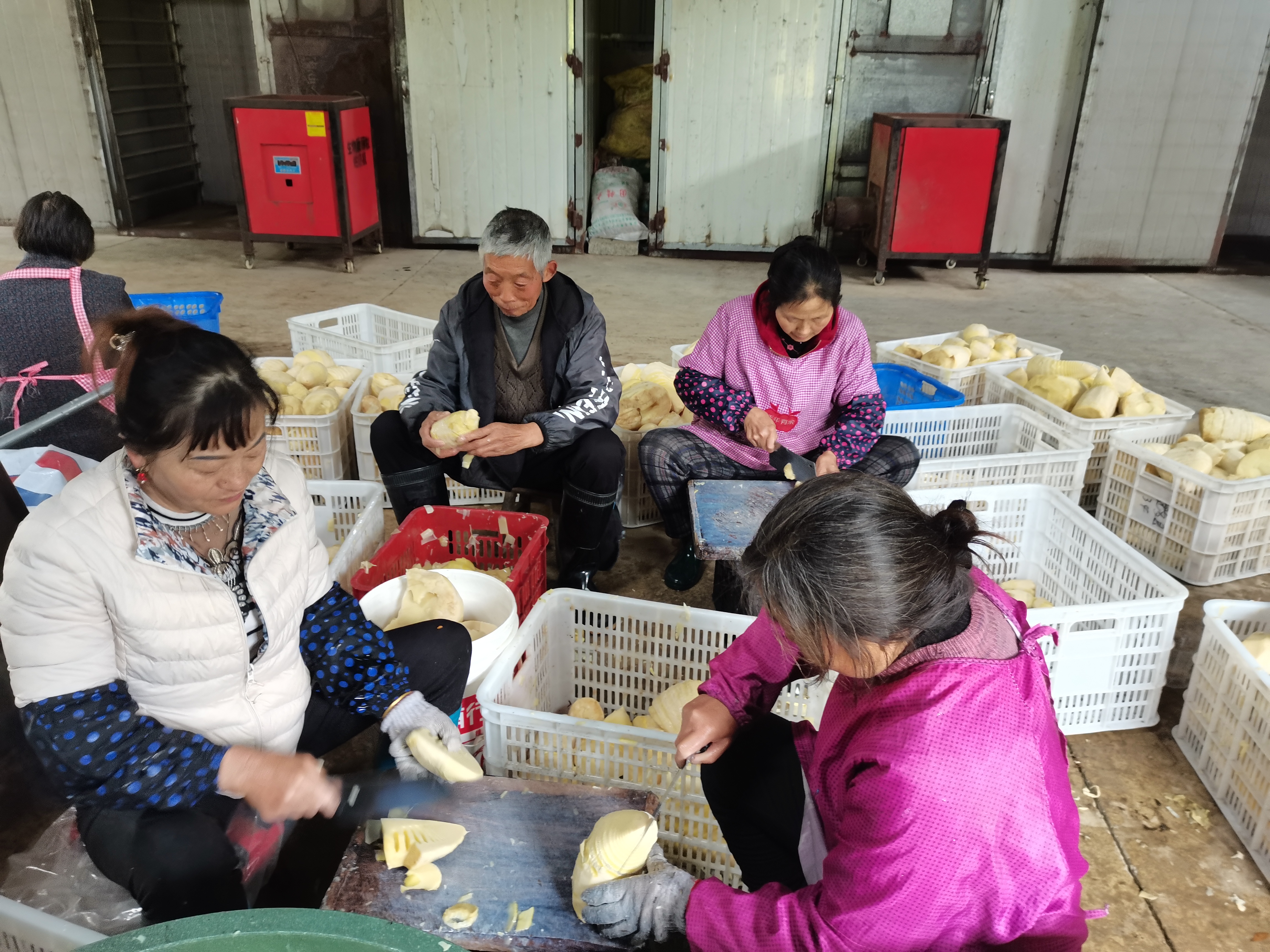 谈到笋干加工产业,山柱尖家庭农场负责人赵振瑜满怀信心:“笋竹加工是长春村的特色产业,我们全村现有从事笋干加工的农户80余户、年产笋干100余吨,加上砍伐毛竹、开挖冬笋等,年产值1000余万元。长春村的笋干品质深受市场的认可,农户的笋干不愁销路,除了供应本地市场,还销售到上海和浙江。这两天笋干刚上市,已经有外地的客商来采购了。现在正是一年最忙碌的时节,每天有10多位村民在我的厂房里帮忙,其中有5户脱贫户,进一步带动了脱贫户稳定增收。”