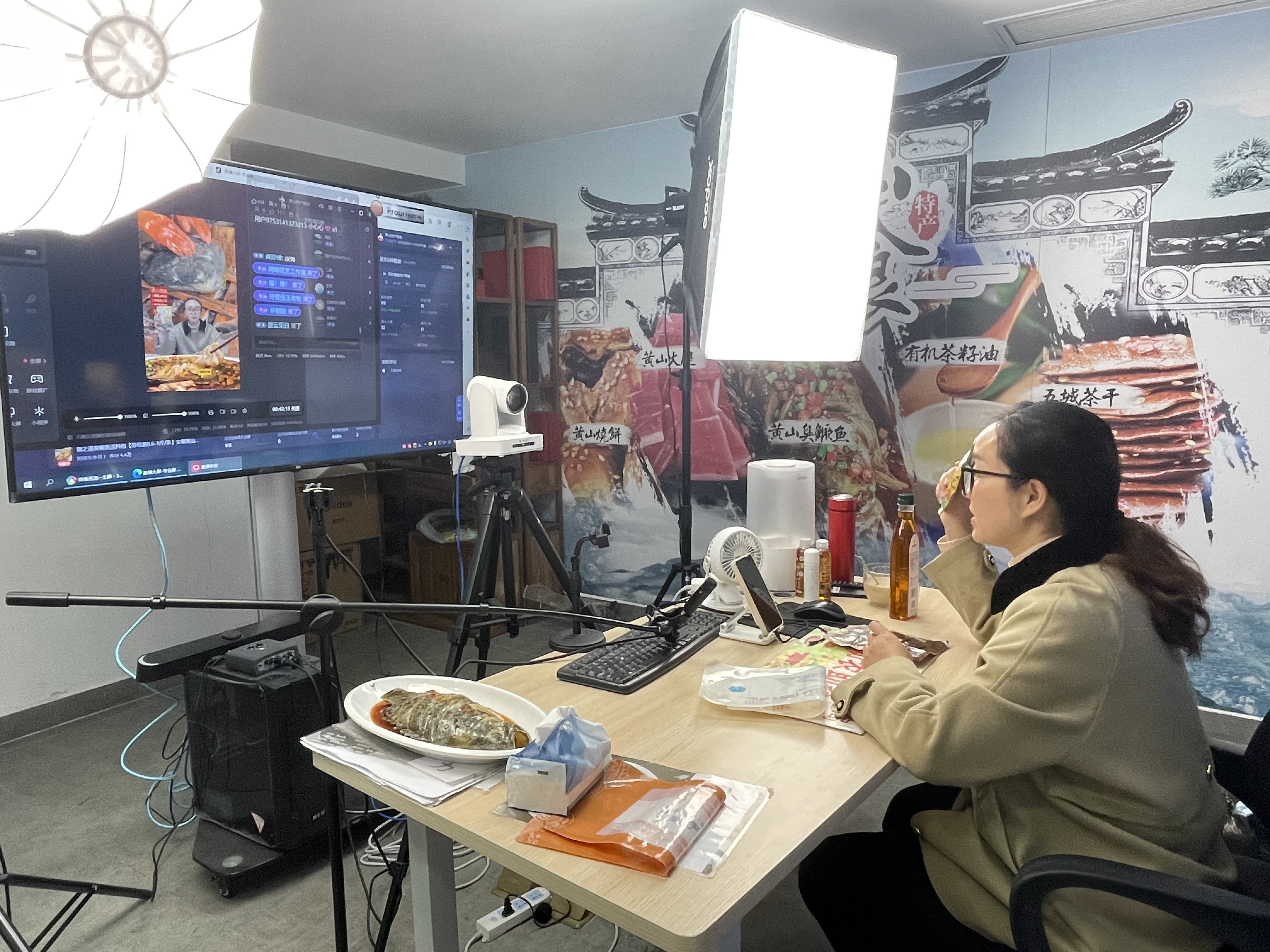 在黄山商维优选电子商务有限公司,电商主播正在直播间里介绍徽州臭鳜鱼、黄山腐乳等当地特色农产品。据了解,随着互联网行业的快速发展,农村电商发展势头良好,农特产品销售逐步转向线上化,黄山商维优选电子商务有限公司抢抓有利时机,建立农户农超对接机制,通过“你种我销、你养我卖”“线上线下、同城对接”等模式帮助小农户自产农特产品“出村进城”。