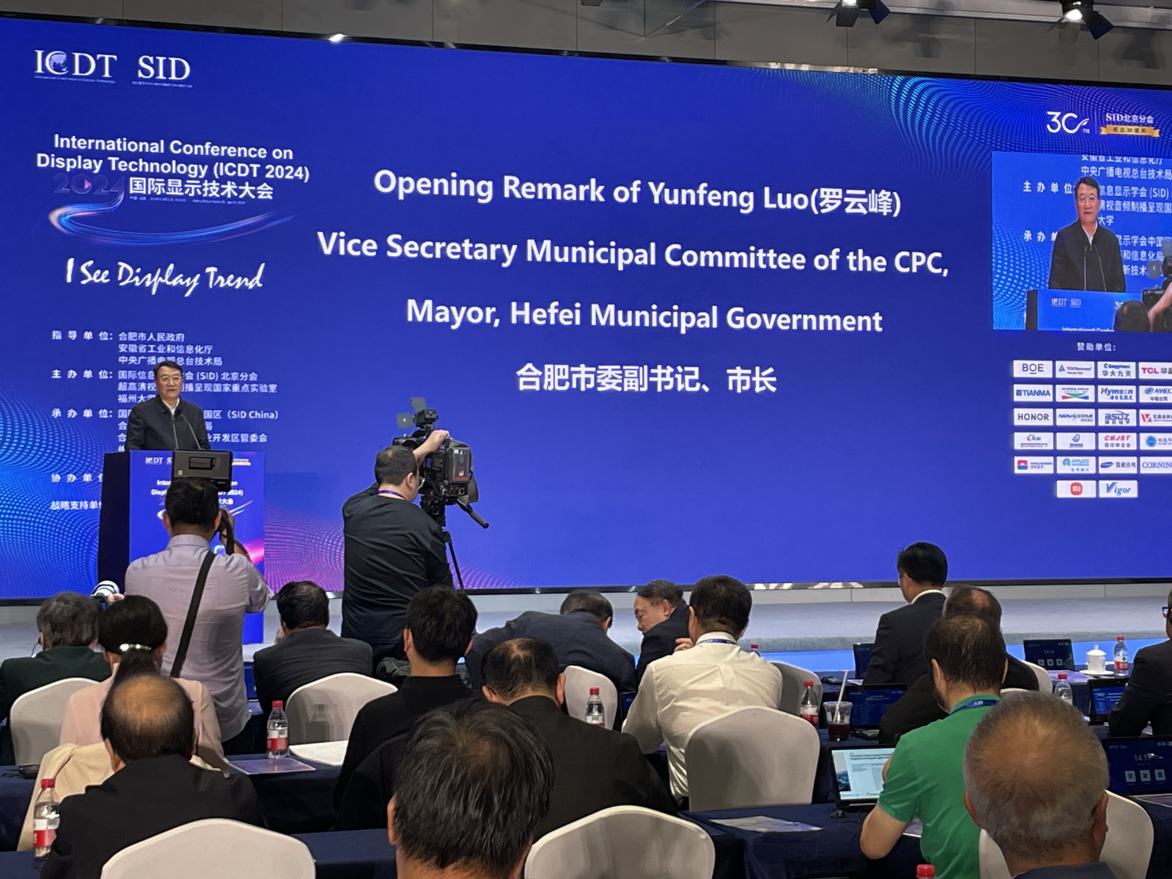 4月1日的开幕式上,合肥市委副书记、市长罗云峰现场致辞,SID全球主席、Starkey Hearing公司首席技术官、资深副总裁Achin Bhowmik博士发表视频致辞。瑞典皇家科学院和工程科学院院士Lars Samuelson教授,中央广播电视总台编务会议成员、总台超高清视音频制播呈现国家重点实验室主任姜文波,中国工程院院士、中国建材集团有限公司首席科学家、国家玻璃新材料创新中心主任彭寿,美国国家工程院院士、Universal Display Corporation执行副总裁兼首席技术官Julie J.Brown,中国科学院院士、复旦大学教授彭慧胜,Meta显示和光学研发总监Yun Wang,首尔大学名誉教授、JooAm Co.首席执行官Jang-Joo Kim,PlayNitride首席执行官李允立,北京华大九天科技股份有限公司董事、总经理杨晓东发表主旨演讲。