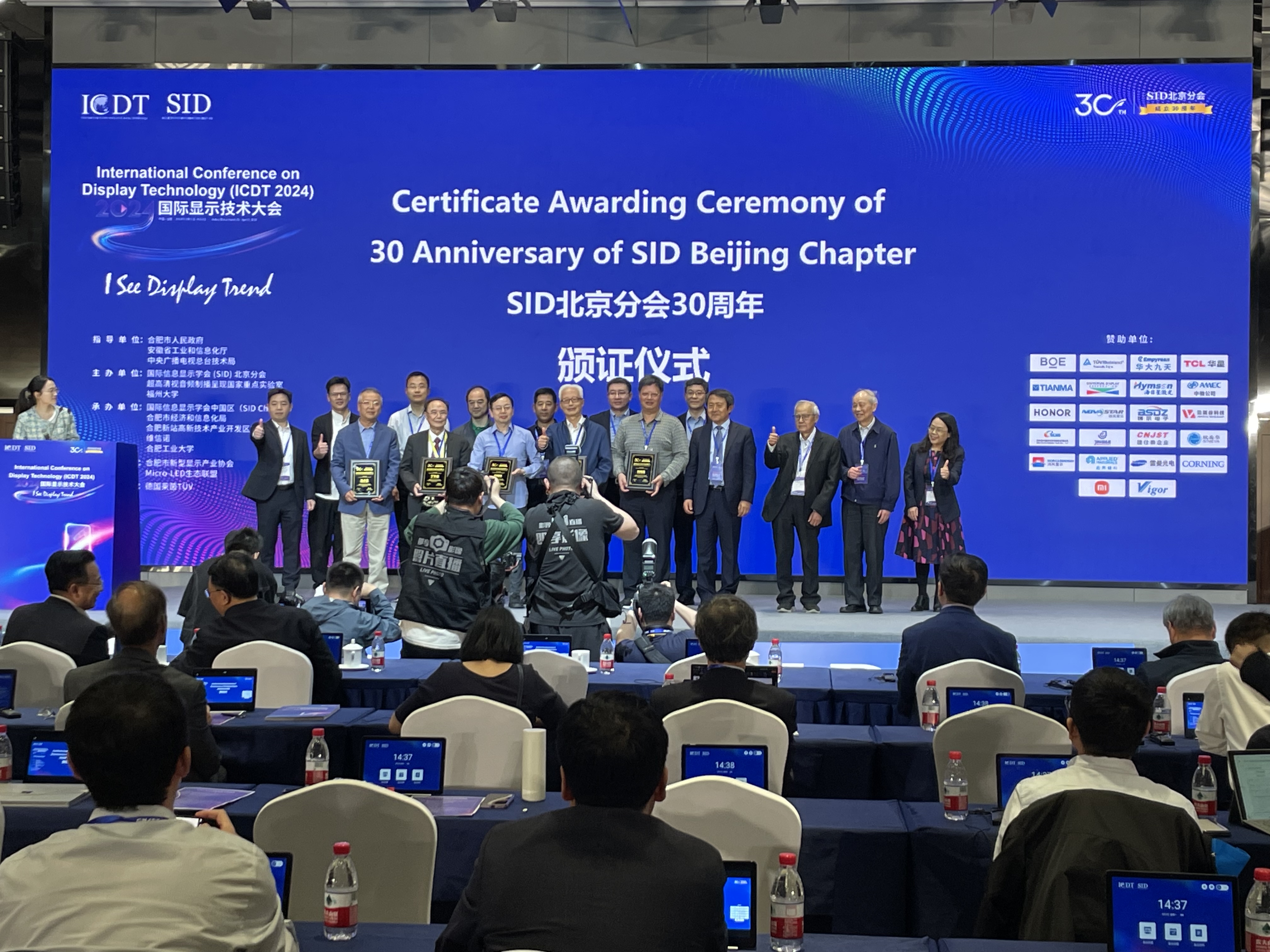 今年迎来第八届ICDT,得到合肥市人民政府、安徽省工业和信息化厅、中央广播电视总台技术局指导支持,由国际信息显示学会(SID)北京分会、总台超高清视音频制播呈现国家重点实验室、福州大学主办;由国际信息显示学会中国区(SID China)、合肥市经济和信息化局、合肥新站高新技术产业开发区管委会、维信诺、合肥工业大学承办;合肥市新型显示产业协会、Micro-LED生态联盟协办,得到了德国莱茵T?V的战略支持。大会吸引了18位中外院士(下附名单),全球各地高等院校及研究机构的研发人员和企业技术人员,企业高管从经理、总监和副总裁,到资深高管和最终用户决策者等,以及信息显示市场专业分析师,投资机构专业人员等2000多名代表参加会议。