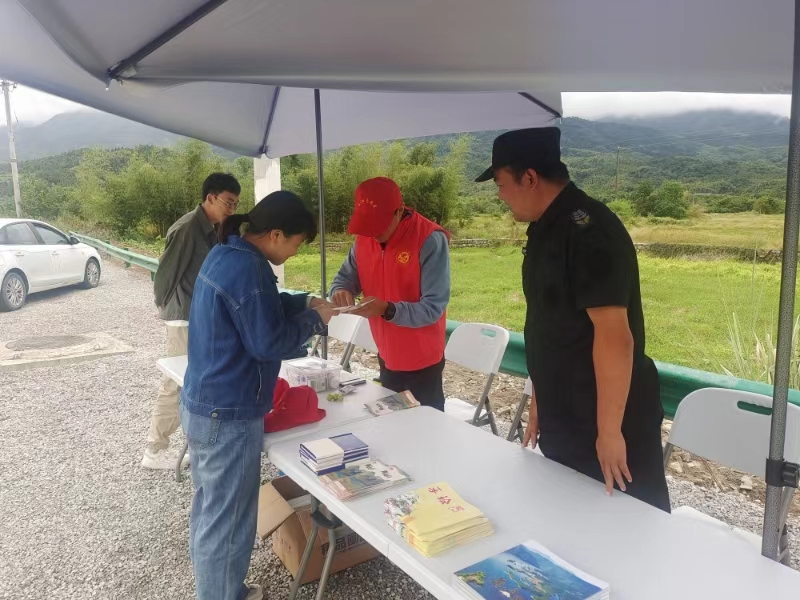 国庆假期第一天,黄山市黄山区焦村镇旅游服务志愿者们在执勤点位早早的忙碌起来。摆放好服务台,准备好旅游服务手册、矿泉水、急救包等物品,为过往游客提供热情周到的服务。