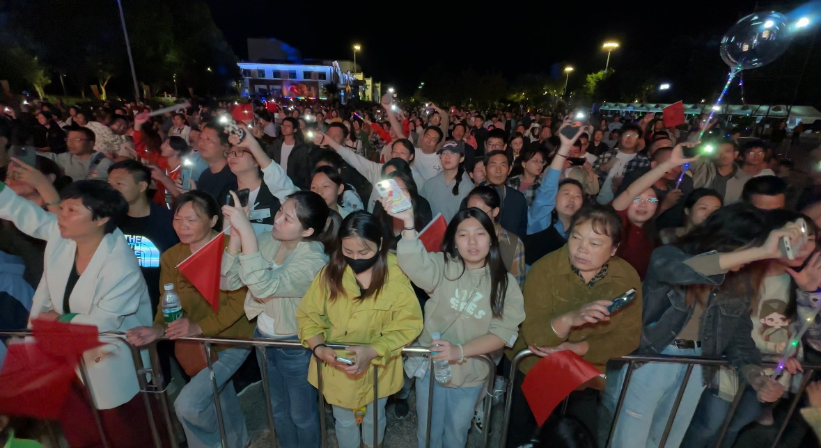 K歌会的震撼与激情持续升温,而与之相邻的花山市集则是另一番热闹非凡的景象。香气扑鼻的美食、精美的文创产品,听觉、视觉、味觉激情碰撞,音乐声和欢乐声此起彼伏。“放假,带孩子过来转转,花山谜窟这里环境、氛围都特别好,然后还有很多的美食,孩子也玩得很开心。”市民黄国琴说。
