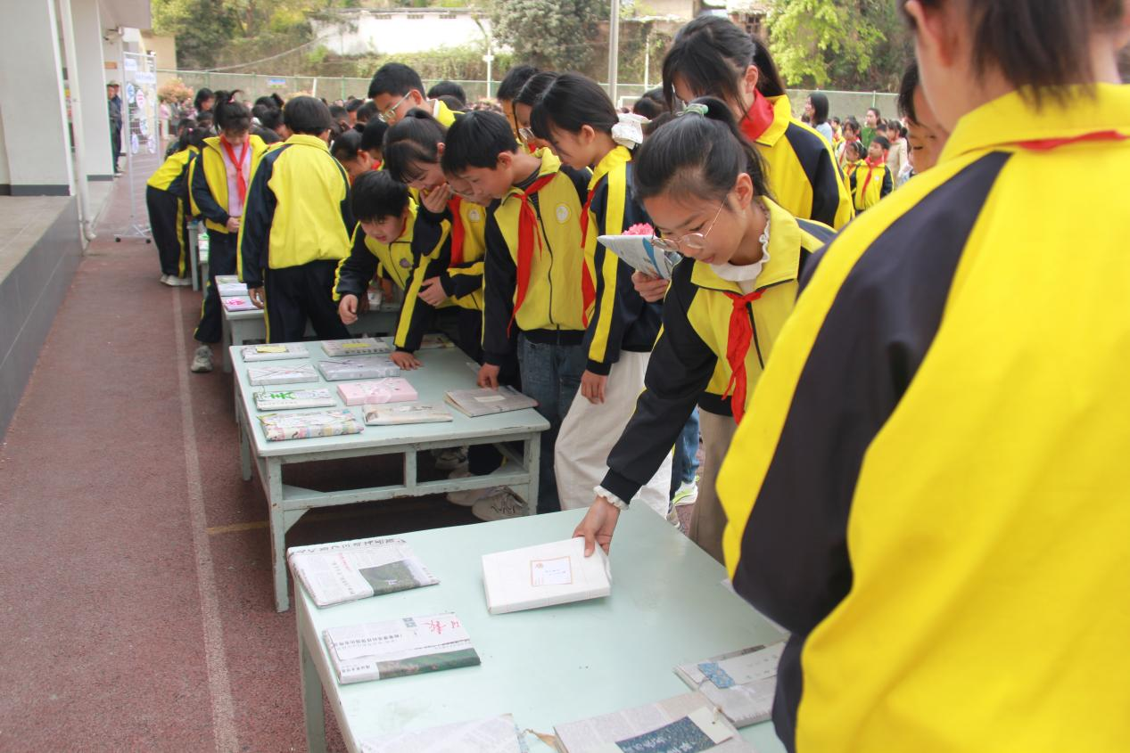 活动现场,校领导班子为各年级教师代表赠予精选教育专著,传递知识薪火;由学生自主包装的“图书漂流盲盒”在主席台整齐陈列,200余本包裹精美的图书在阳光下熠熠生辉。各年级学生代表依次登台随机抽取“阅读盲盒”。