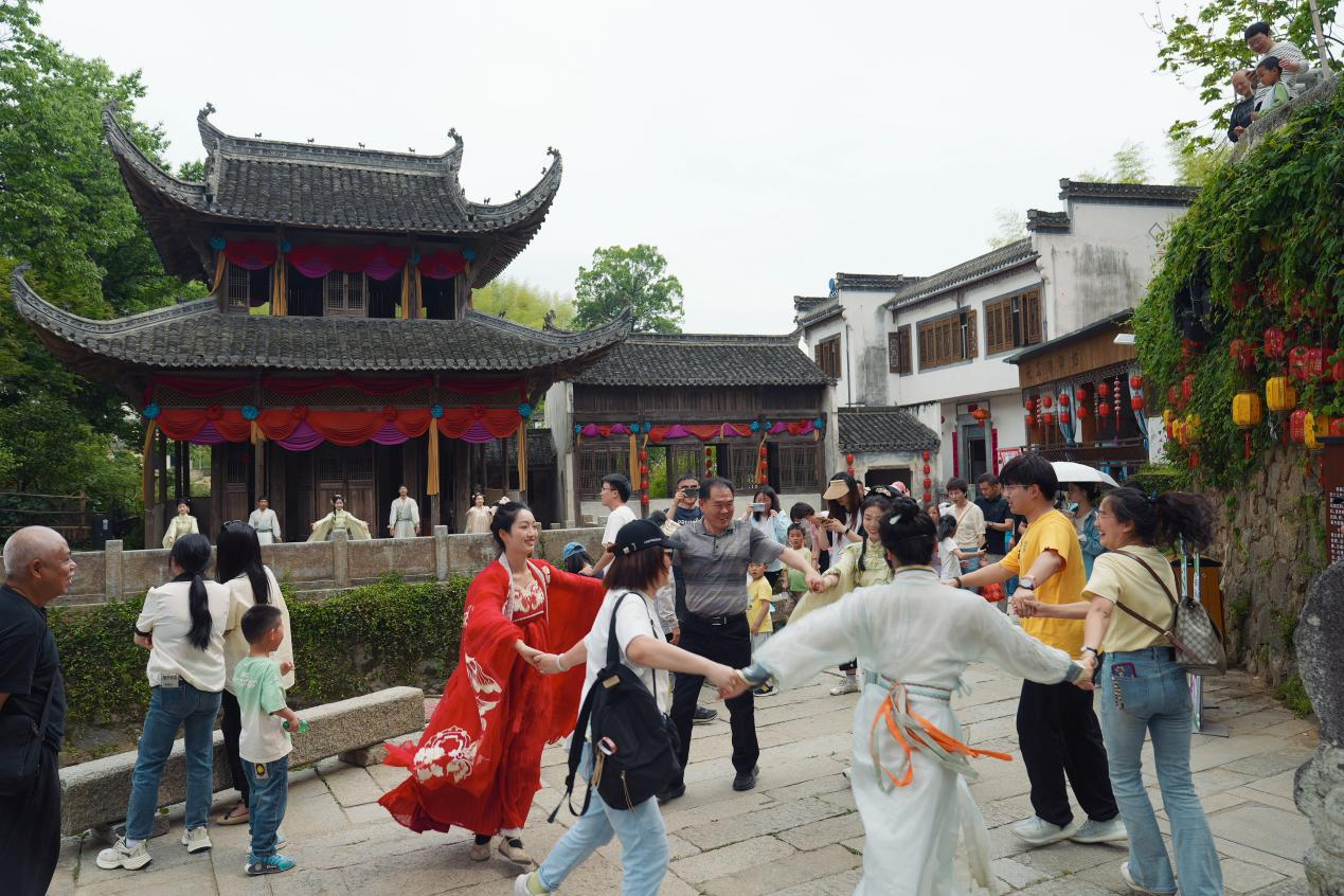 演职人员与旅居游客互动
