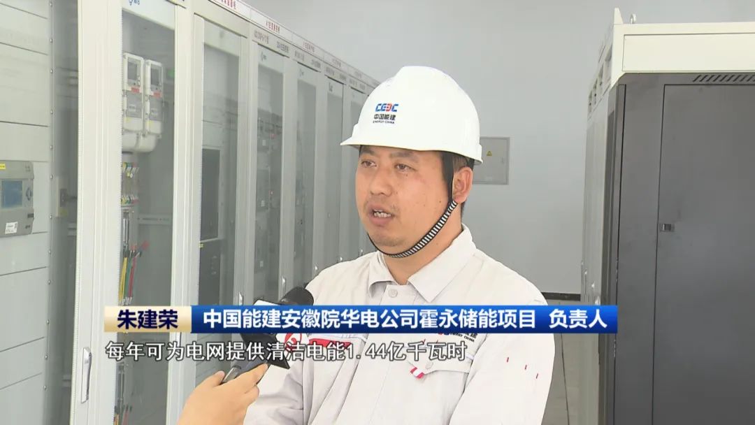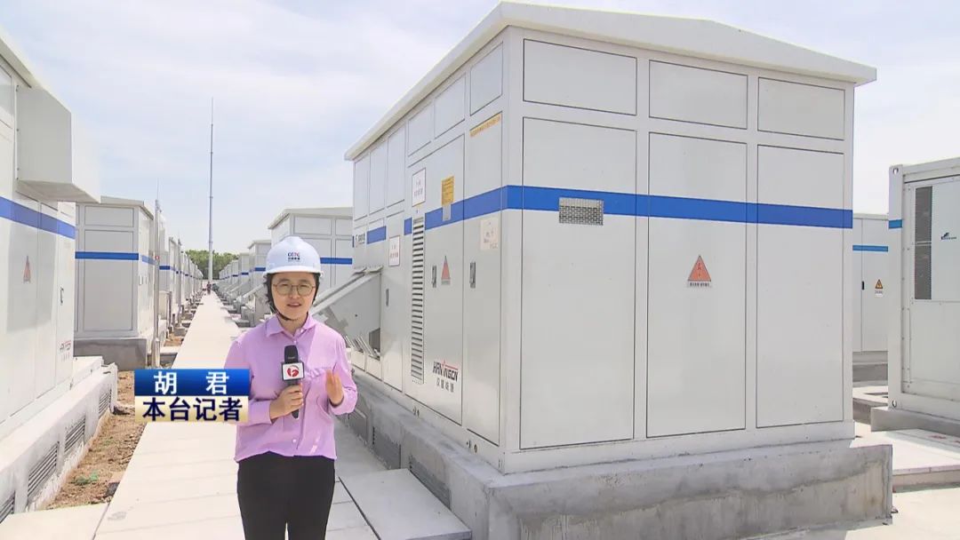 我们现在来到的是位于六安的刚刚并网成功的霍永储能电站,这里也是目前安徽省获批建成的规模最大的共享储能电站,我身后这60组集装箱大小的储能电池柜通过“一充一放”模式,每天可以满足10万户家庭用电需求。而且作为绿色充电宝,它每年可以减少煤炭的消耗量达到了4.5万吨。