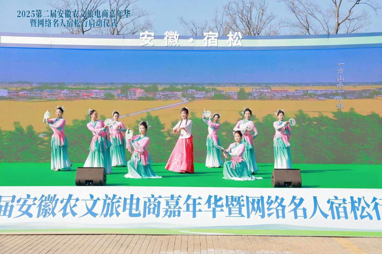 启动仪式现场亮点纷呈、热力十足。“滋味宿松”专题推介全方位、多角度呈现农文旅融合发展的丰硕成果;实时连线直击大湖冬捕的壮阔景象;本土艺术家倾情演绎黄梅戏、文南词等传统艺术,古老文脉与现代新风交相辉映、韵味悠长;“网络名人宿松行”授旗出征,用镜头捕捉宿松山水灵秀,用文字讲述宿松人文气韵,用直播展现宿松产业兴盛,为宿松优质产品搭建更广阔的“出圈”平台。