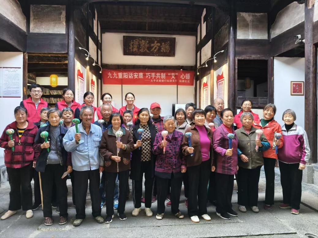 重阳佳节,为传承敬老爱老优良传统,增强老年人防范金融诈骗意识,10月28日下午,黄山市黄山区仙源镇仙源社区联合太平农商行仙源支行,在社区“初心学堂”共同举办“九九重阳话安康 巧手共制‘艾’心锤”主题活动,吸引了辖区20余位老年人积极参与。