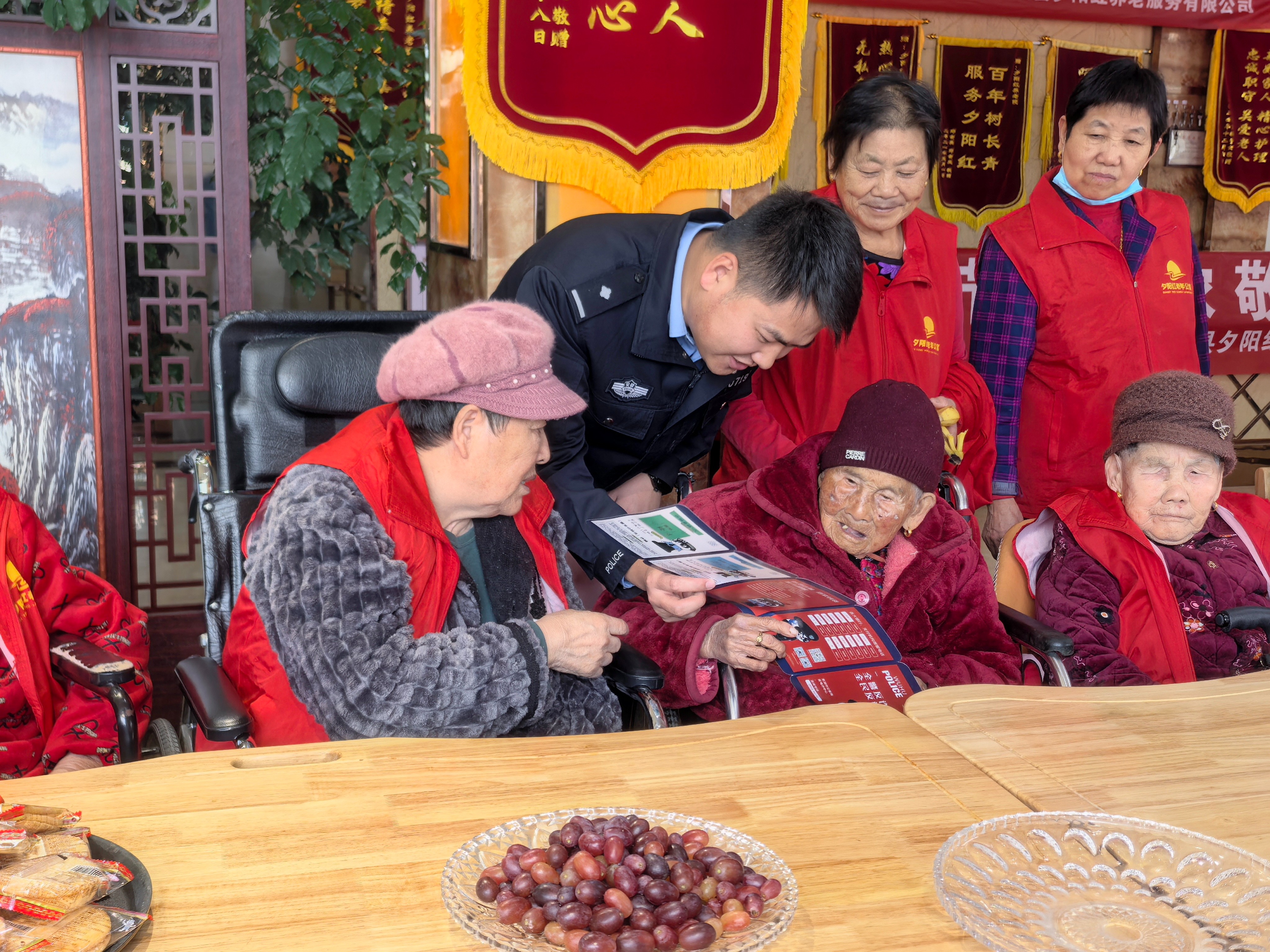 10月29日,南陵县许镇派出所在重阳节之际前往许镇敬老院看望老人,同时向敬老院老人宣传防范养老诈骗的普法知识。(李木子)