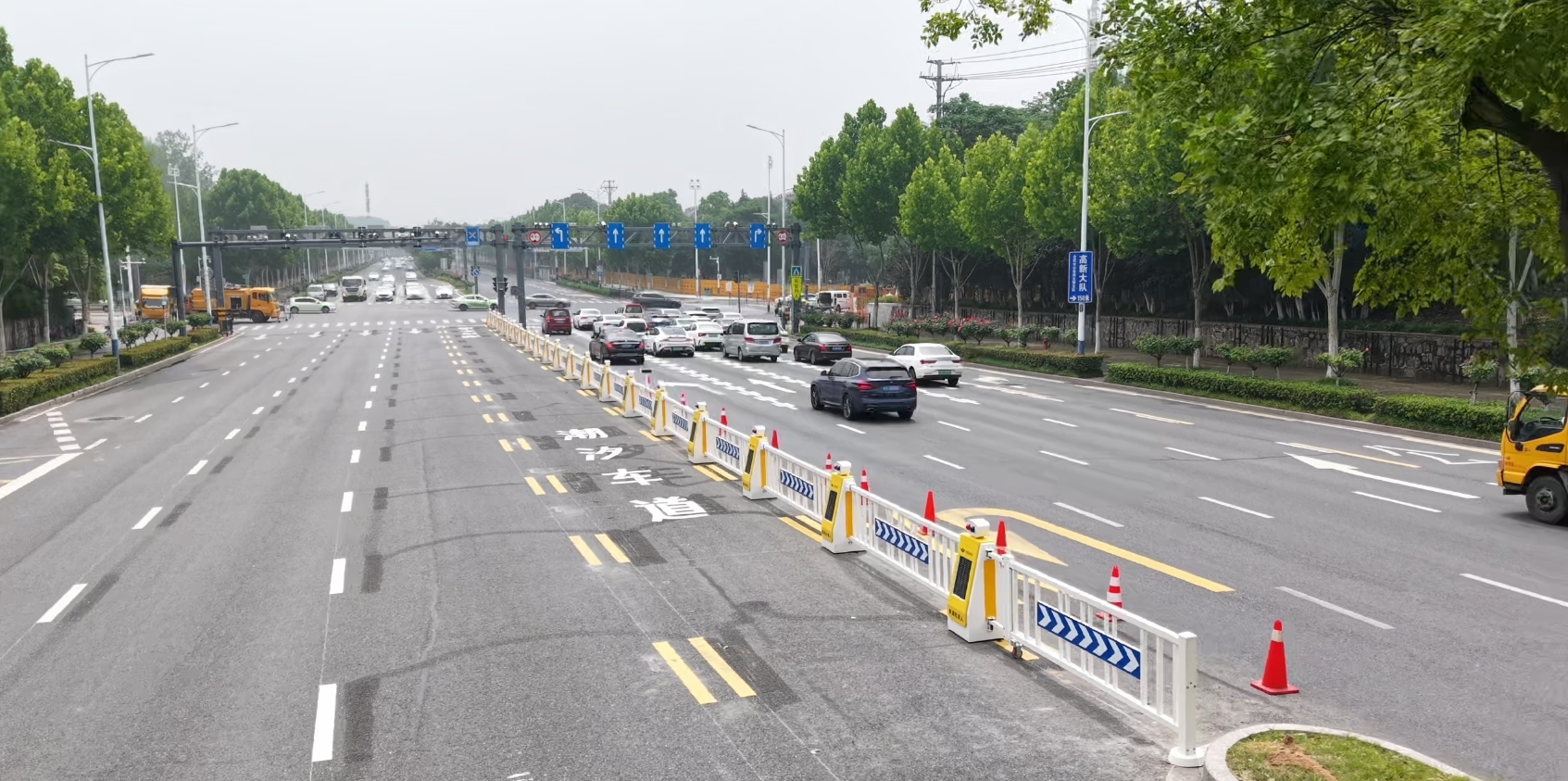 这是一条怎样的车道?这条会“变身”的道路自今年6月正式投入使用,配置了安徽省首处潮汐变道机器人。10月23日,记者最新了解到,自该路段完成升级以来,左转车辆每个信号周期平均节省等候时间55秒,路口通行效率提升约35%。