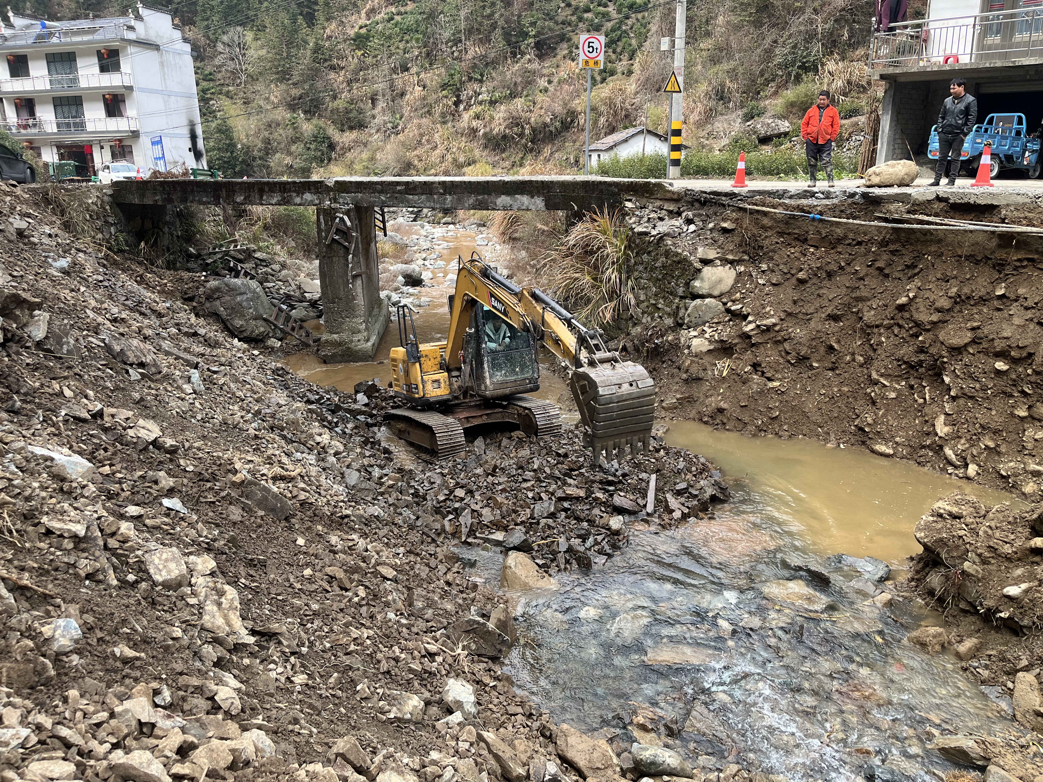 在通往中国传统村落周家源村的道路上,一座约2米宽、15米长的小桥跨越在河道上,挖掘机等机械开足马力,施工人员正忙碌地修建拦坝,以便进行新桥的建设。施工前期,休宁县交通运输局和璜尖乡政府工作人员多次深入施工一线,严格把守质量关、安全关,密切关注施工进度,指导施工单位按照图纸规范推进项目建设环节,确保高标准高质量按期完成项目建设任务。璜尖二桥重建为游客探秘璜尖风光提供安全通道,更通过提升山货运输效率,让竹笋、茶叶等农产品快速出山变现,助力乡村产业振兴。