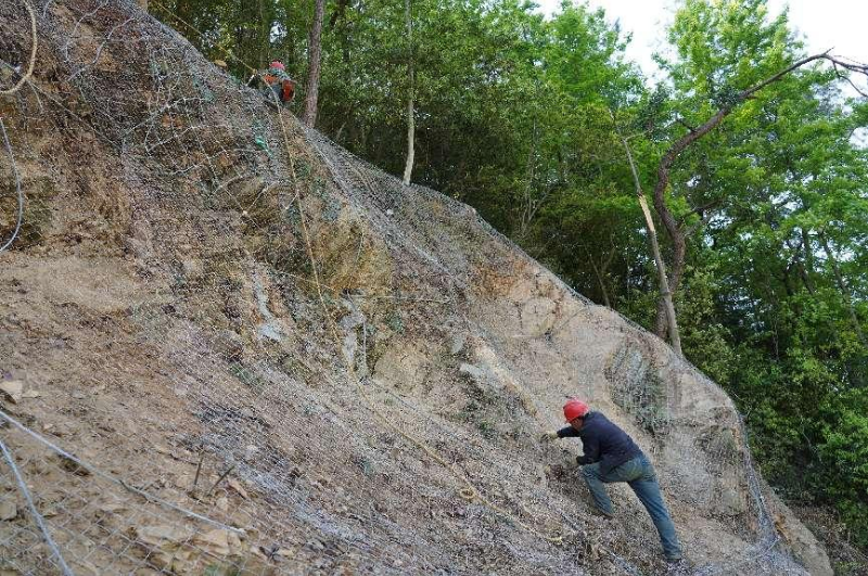 在昱中街道杨梅山社区活动中心崩塌地质灾害治理现场,施工人员正在加装防护网。“我们分为三个坡面作业,采取人员轮换施工方式。”项目现场负责人叶庸介绍,“去年 ‘ 6·20洪灾给黄山造成严重影响,我们计划在5月中下旬完成治理工程,确保在下一个汛期来临前消除隐患。”