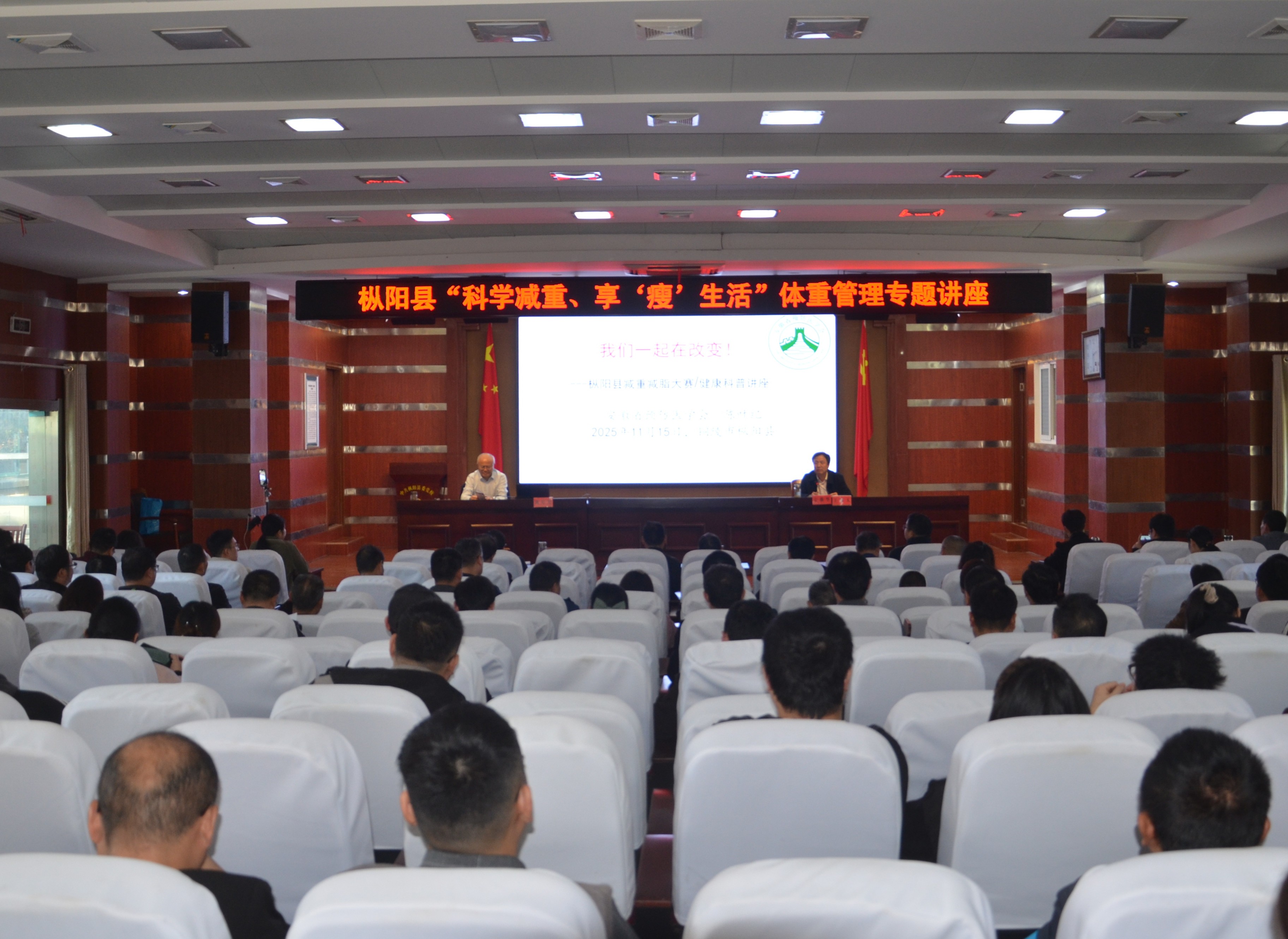 11月15日,枞阳县卫生健康委在该县县委党校一楼报告厅举办“科学减重、享‘瘦’生活”体重管理专题讲座。邀请省预防医学会秘书长、省疾控中心健康教育与健康促进主任医师陈叶纪作体重管理健康科普专题讲座;参加全县减重减脂大赛人员和该县卫生健康委二级机构以上负责同志、各卫生健康单位主要负责同志和分管负责同志、县直卫生健康单位体重管理门诊和健康教育工作人员及县减重减脂大赛专家指导组成员等120多人参加。
