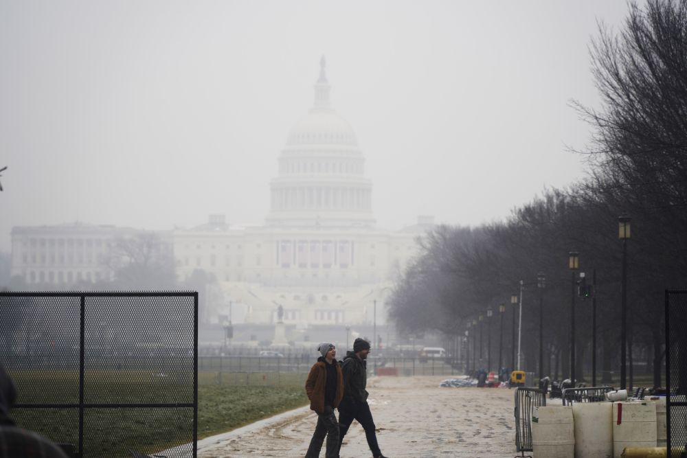 1月19日,人们从美国华盛顿的国会大厦前走过。新华社记者吴晓凌摄