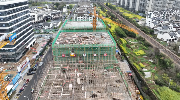 项目现场负责人叶建平介绍:“目前,项目4栋建筑正同步施工,场内约有100名工人,分成十几个班组全力抢抓工期,力争在8月底全面竣工。”
