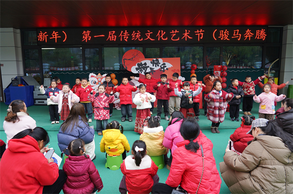 1月28日上午,黄山市示范幼儿园阳湖分园内暖意融融、笑语盈盈,首届“骏马奔腾送福至 亲子嬉乐贺新年”传统文化艺术节热闹启幕,将浓浓的年味与传统文化气息融入校园,为冬日增添了勃勃生机。