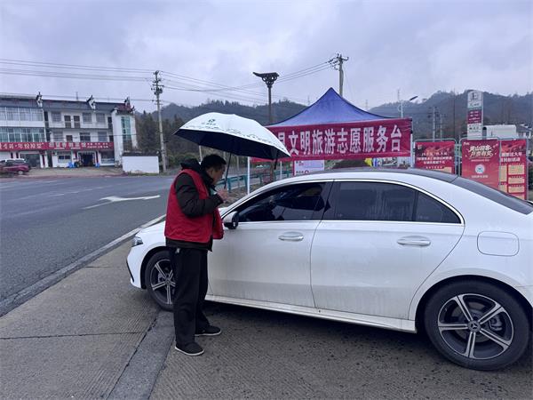 志愿服务现场秩序井然。志愿者们统一身着红色马甲,精神饱满、举止文明。服务点醒目设置志愿服务标识与咨询服务台,免费提供热水、信息咨询、道路引航、应急帮扶等多项便民服务,真正把服务做到游客最需要的地方。志愿者们分工协作,有的在车流中开展秩序维护与文明劝导,保障出行顺畅;有的主动为游客指引方向、讲解路线;有的耐心解答景区、交通、住宿等各类问题。一句句文明用语、一次次微笑服务,温暖着每一位旅途人的心。