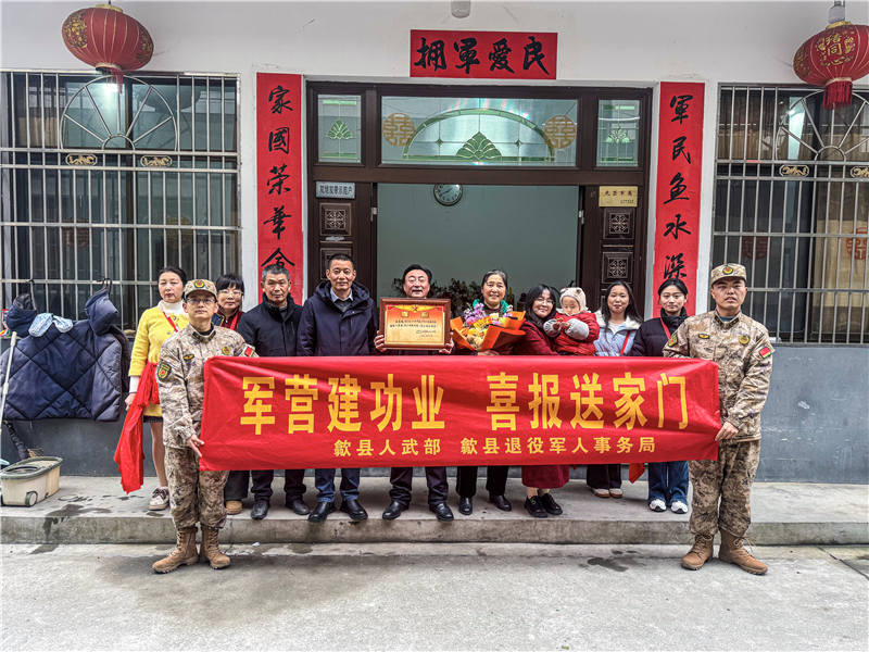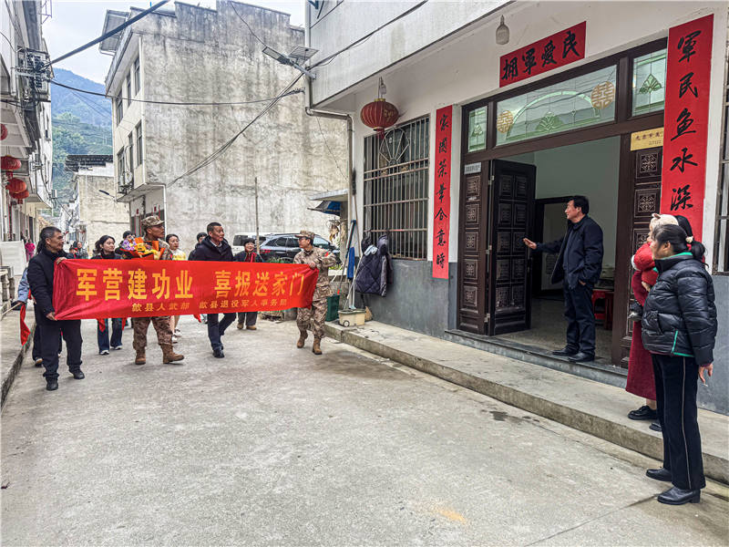 近日,歙县街口镇雁洲村锣鼓喧腾,喜气盈村。一支拉横幅、敲锣鼓的队伍沿着村道热闹前行,引来邻里纷纷探看——这不是寻常的热闹,而是县人武部、退役军人事务局与镇村干部专程为现役军官张晨曦送三等功喜报而来。这份荣光,落进了村党总支书记胡在中的家门。
