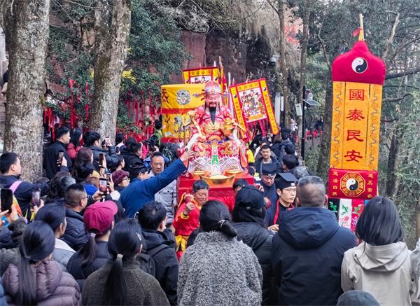 同时,当日齐云山景区也开展了“财神巡游”活动。在丹崖碧瓦的映衬下,财神队伍沿天街徐徐前行,仙山胜境瞬间化作喜庆的海洋。游客们纷纷驻足追随,触摸金光闪闪的元宝沾“财气”,与“财神”合影打卡,沉浸式体验浓浓的徽州年味,为新春旅途增添了别样的喜庆与美好。(吴玉洁 谷庆江 张晓晖)