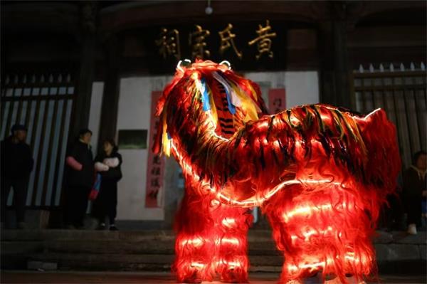 深挖民俗内涵,激活传统文化新动能。春节期间,杞梓里镇立足本土特色,推动非物质文化遗产创造性转化与创新性发展,村级民俗精彩亮相,持续擦亮文化名片。英坑舞狮与瞻淇鱼灯、汪满田鱼灯等顶流IP一道登上央视春晚合肥分会场舞台,杞梓里村龙狮斗、英坑舞狮更成为正月县城府衙表演的常驻队伍,在本土乡村掀起热潮。各村因地制宜形成“一村一品”节庆格局:苏村村恢复抬阁传统,小源村举办乡村晚会,磻溪村古稀宴上银发老人怡然自乐,竹溪村神狮踏步马年献瑞,乡村文化名片被不断擦亮。与此同时,着力推动业态升级,通过日夜联动延长消费链,坡山村打破传统观光边界,构建“日赏风光、夜赏鱼灯”的全时沉浸体验体系,在村内自发开展徽州鱼灯展演,实现游客停留时间与消费潜力的双重提升,持续激发假日旅游新活力。