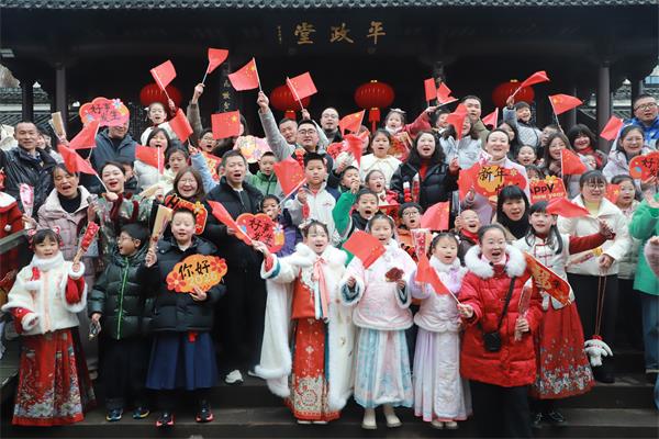福启新春,状元城里诵华章。上午10时,“状元钟响·新春祈福诵读会”在状元广场主会场及齐云山、古城岩、黄村进士第、汪村石屋坑、姚华亮红色展示馆等五大分会场同步启幕。主会场内,百余名亲子家庭登状元阁、敲状元钟,齐诵《少年中国说》等篇目,以传统礼仪开启新岁智慧;古城岩景区百人齐诵《状元城新春赋》,万安古镇回荡琅琅书声;黄村进士第的村民与游客共同诵读《我爱你中国》,将家国情怀融入古村年味;石屋坑与姚华亮红馆内,老党员与青少年接力诵读红色经典,在诗词中传承初心使命。一场跨越城乡的诵读接力,以书香为媒,传递福运,点燃了整座城市的“福”文化热潮。