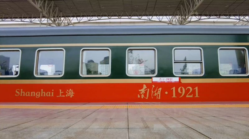 离开纪念馆前往上海西站,游客可搭乘“南湖·1921”红色旅游专列,重走代表们当年的路线“转移”至嘉兴。列车采用绿皮车为车底,车身饰以红、金、绿色涂装,车厢以木质座椅、老照片、老时刻表等还原上世纪20年代的古朴风格,百年时空在此交错重叠。