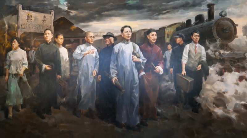1921年7月23日,中国共产党第一次全国代表大会在上海开幕,宣告中国共产党正式成立,后因暗探闯入会场,代表们紧急撤离,乘火车转移到浙江嘉兴南湖的游船上举行。