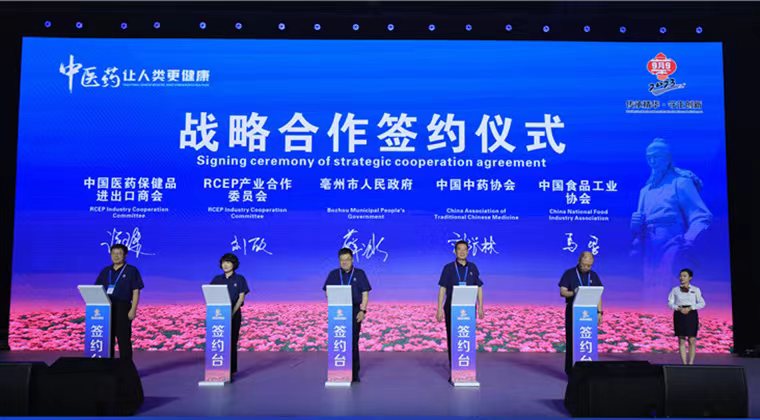 开幕式上,现场为国医大师徐经世颁授“华佗医家”匾额,举行“长三角中药产业创新联盟”成立仪式,中国中药协会、RCEP产业合作委员会、中国食品工业协会、中国医药保健品进出口商会与亳州市人民政府集中签署战略合作协议,发布《RCEP国家中医药行业亳州共识》,中国药膳研究会发布团体标准《食养药膳预制菜生产通则》。现场还举行了精彩的中医药文化展演,通过舞蹈、情景剧、歌伴舞、诵读等形式呈现“盛世药都”“千年药都”“世界药都”“好客药都”四大篇章,全方位展现了亳州厚重的中医药文化魅力。