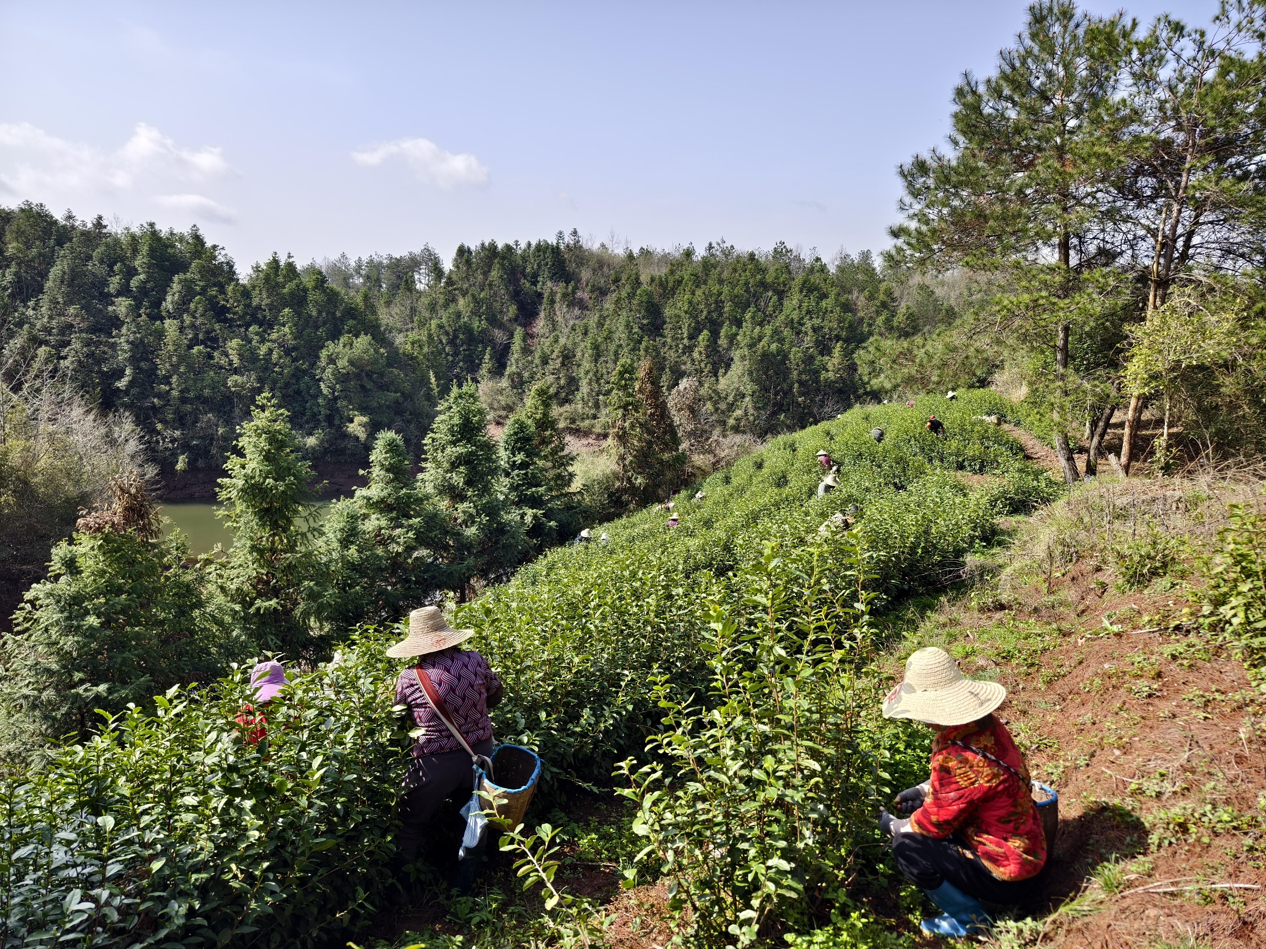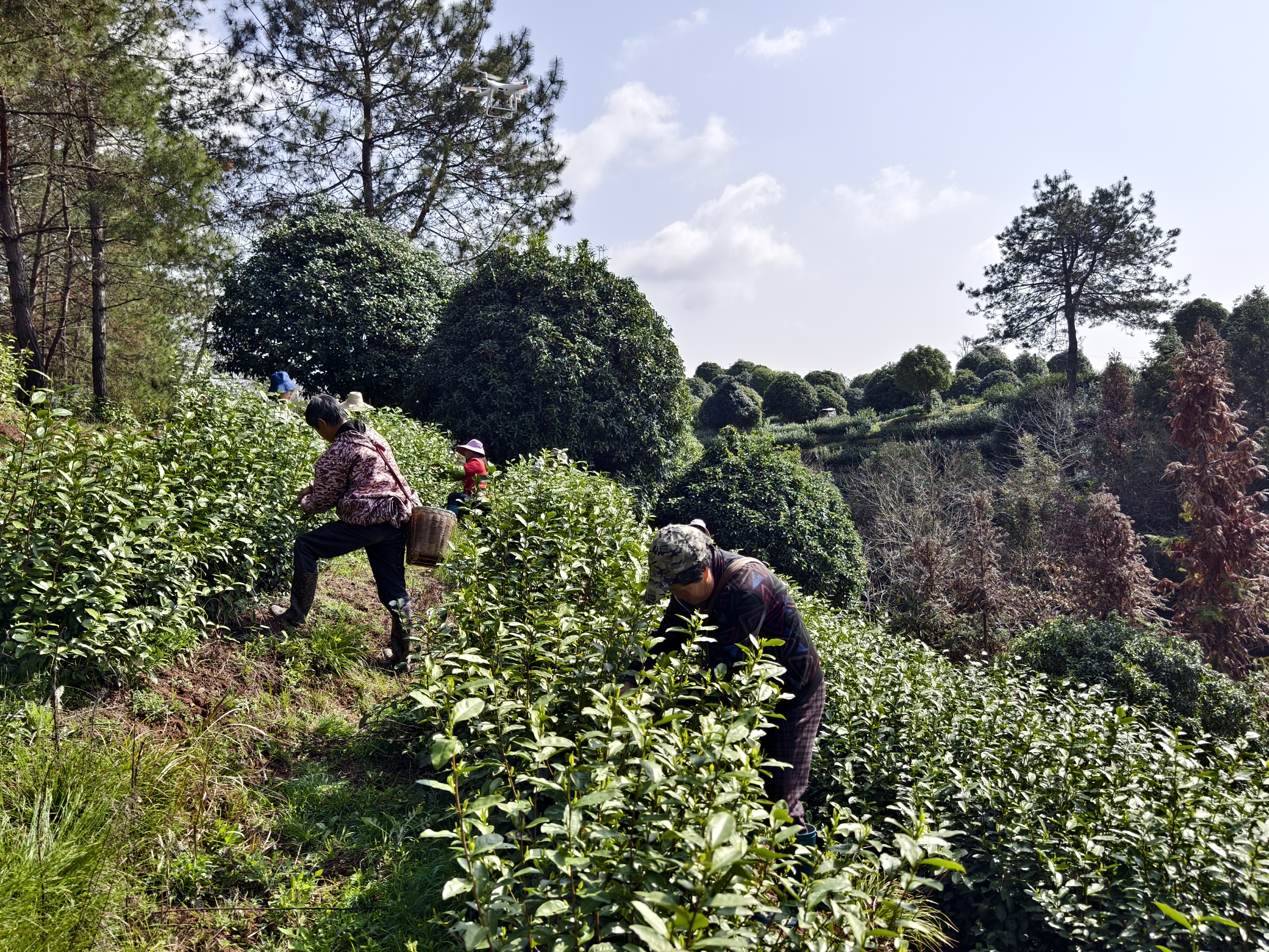 此次茶园开采的茶叶为无性系优质良种茶叶,首茬春茶因其茶香馥郁、茶味醇正,深受市场喜爱。40多名茶农们正背着竹篓穿梭在茶山间,抢抓时机,熟练地采摘春茶。