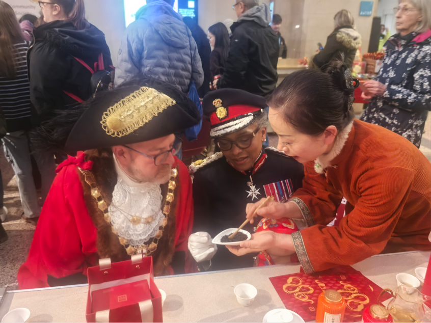 走进布里斯托博物馆,新春的气息扑面而来,大红灯笼高挂,小鱼灯点缀其间,处处洋溢着喜庆的氛围。活动由祁门红茶集团的传统茶艺表演开场,茶艺师们以精湛的技艺展示了中国茶文化,让观众们切身体验中国茶蕴含的历史韵味,感受中国传统文化的源远流长、博大精深。