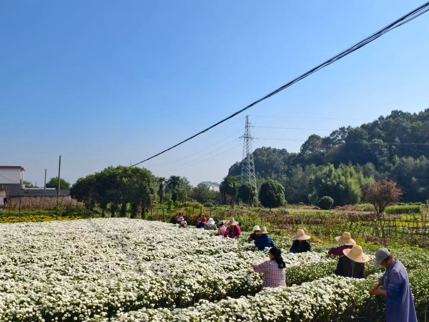 金秋时节,休宁渭桥乡菊花淡雅香气四溢,全乡数片菊田进入集中采收期,朵朵菊花不仅成为乡域内一道靓丽景致,更成为当地村民增收致富的“致富花”。