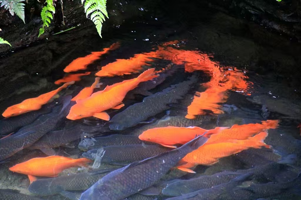 此外,板桥乡融合军民发展机遇,对接驻军部队实施"六项援建"行动,在板桥、梓坞两村建成集体鱼塘100余口。依托山泉流水养鱼生态系统入选"中国重要农业文化遗产"的契机,该乡精心打造"板桥泉水鱼""红军鱼塘""状元鱼王"等特色品牌,加速推进渔旅深度融合。在梓坞村修缮木屋基础上,建成207平方米的泉水鱼记忆馆,鱼水情文化展示于一体。村内一条55岁高龄的"状元鱼王"成为热门打卡点,吸引众多游客驻足。联合县烹饪协会开展泉水鱼"一鱼三吃"特色烹饪培训,指导"渔家乐"餐馆推出系列乡土菜肴。整合红色文化、古道徒步、水果采摘等资源,形成"品鱼+研学+休闲"的复合体验链。
