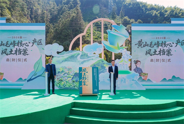 活动伊始,嘉宾们远眺富溪茶山,在“古礼请茶・开山纳福”传统茶礼中沉浸式感受千年茶文化的厚重底蕴,茶艺师递上新茶,清香四溢间尽享黄山毛峰“香高味醇”的品质魅力。徽州区委副书记、区人民政府区长王苏平上台致辞,向各界来宾表示热烈欢迎,展望了茶产业高质量发展的美好前景。随后,《黄山毛峰核心产区风土档案(2026版)》正式启封,这份内含权威土壤检测报告的档案,系统解读了富溪小产区独特的生态禀赋与黄山毛峰卓越品质的根源,让在场嘉宾深刻感知“好山好水出好茶”的核心密码。一场特色歌舞《一盏毛峰》,以艺术形式传递出黄山毛峰与富溪山水的深厚“羁绊”,赢得现场阵阵掌声。
