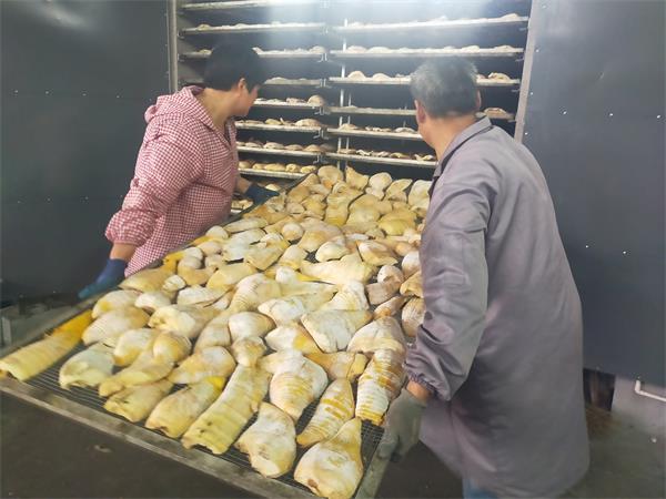 车间内,分拣笋衣、笋尖、笋块,烘干、包装等工序有条不紊地推进,近十台烘干机器24小时满负荷运转,春笋清香弥漫车间,一派繁忙景象。周边村民纷纷将剥好的鲜笋送来销售,收购范围覆盖本镇西田、阳台、五丰等村,还延伸至岭南、山斗、东临溪等周边乡镇。