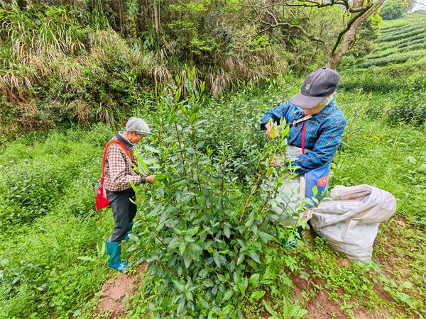 层层茶垄依山延展,鲜嫩茶芽散发淡淡清香。50多名茶农腰挎竹篓,指尖灵巧翻飞,精准掐采一叶一芽。“趁着露水还在的时候采茶,茶叶的品质最好,在家门口的茶厂干活,既能照顾家庭,收入也很可观,这片茶山就是我们的致富山。” 村民们满脸笑意地说。依托茶厂就近务工,小小茶叶成为周边村民增收致富的“金叶子”。