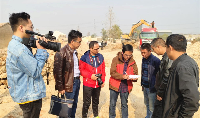 在凤阳县,市人大常委会副主任李庆宁与记者深入到凤阳县大庙镇杨岗村石英砂拆除现场,详细了解凤阳石英砂整治工作开展情况,查看拆除进度,了解土地复垦情况。