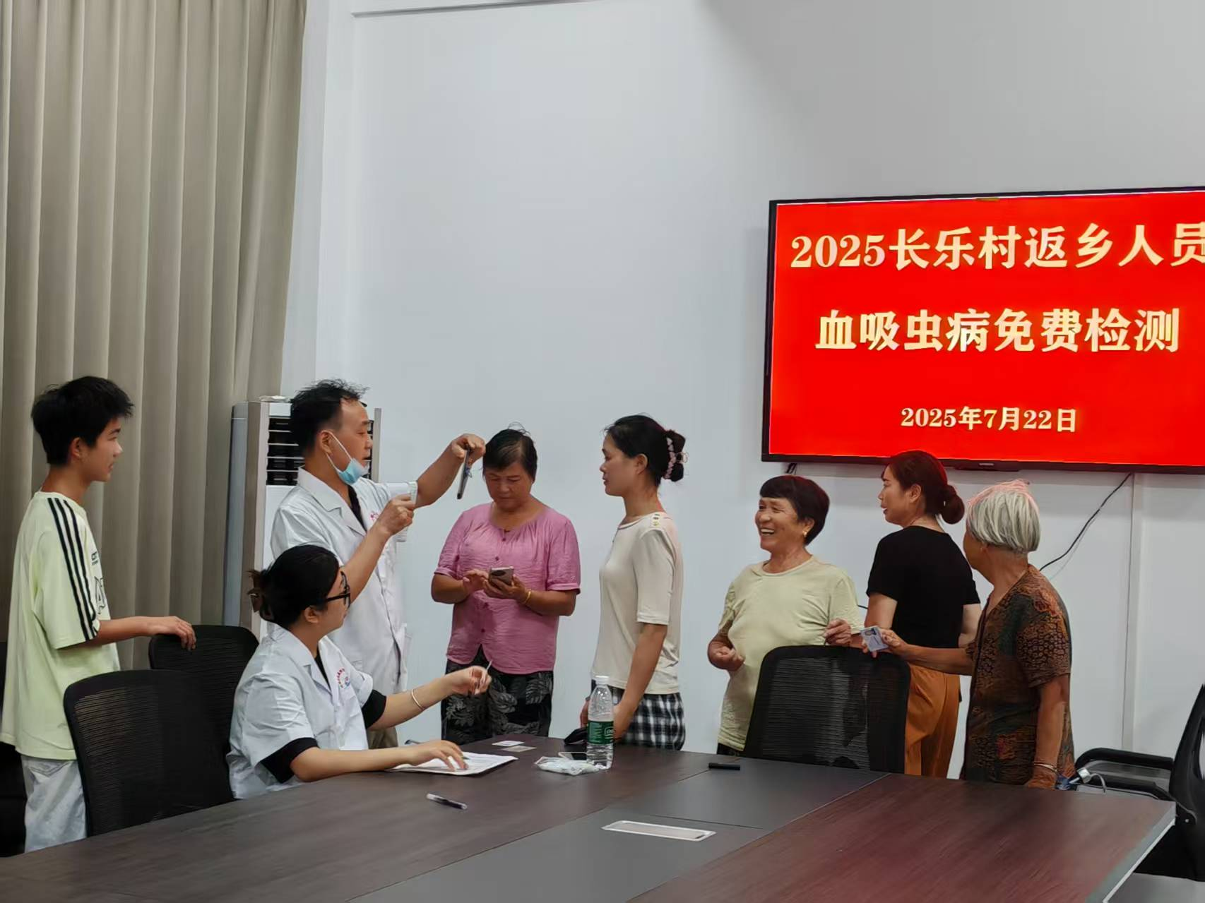 7月22日,南陵县血防站一行应邀来长乐村为返乡人员开展年度血吸虫集中监测工作。