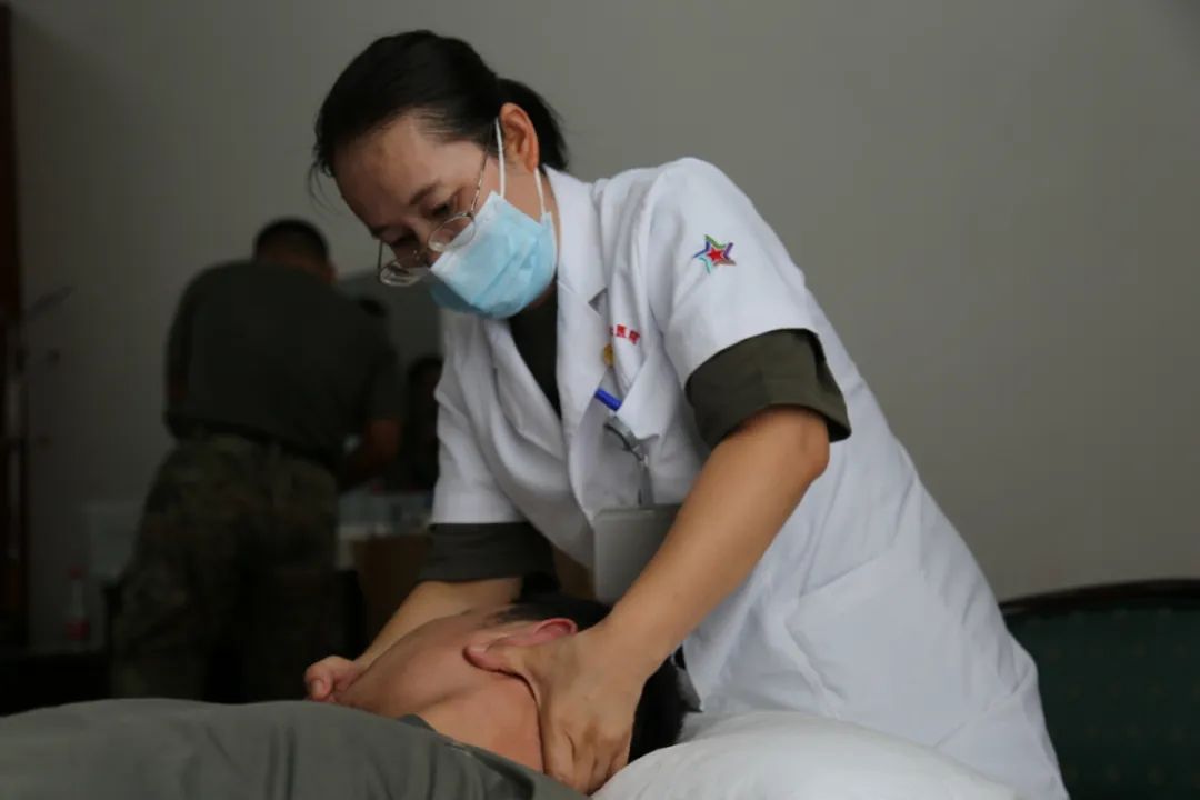 在体检过程中,医生们针对检查结果,结合官兵的生活习惯、训练情况和实际需求,提供了个性化的健康建议和指导。他们耐心细致地为官兵们讲解科学的保健知识,帮助官兵树立正确的健康观念,提高自我保健能力。副院长程海林针对高强度训练环境下易发的呼吸道问题及训练防护要点进行了专业诊疗与指导;中医科专家尚萍发挥中医药独特优势,为官兵提供体质辨识、针灸体验和个性化中医调理建议;康复医学科主管技师吴小丽则聚焦官兵常见的肌肉骨骼劳损问题,现场教授拉伸放松和训练后恢复技巧,并进行康复理疗。