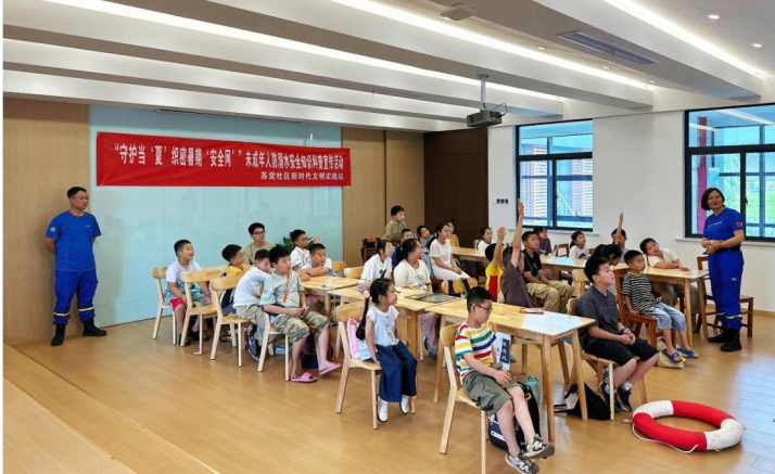 “童安”守护,筑牢成长生命线。安全是“童模式”的基石。苏觉社区将安全教育作为重中之重,联合多部门力量,为孩子们打造全方位的安全防护网。最具特色的是“安全专家进课堂”活动,广德市蓝天救援队的“蓝老师”通过逼真的场景模拟和热烈的互动问答,将防溺水知识烙印心间;该市司法局工作人员带来生动有趣的普法小课堂,用贴近儿童生活的案例讲解法律常识,引导孩子们树立规则意识;市消防救援大队的消防员则化身“安全卫士”,科普消防安全知识,指导孩子们在模拟烟雾逃生通道中进行演练,掌握自救互救技能。这些专业、生动的安全教育课,让孩子们在沉浸式体验中提升了安全防范意识和应急能力,为快乐假期系紧了“安全带”。