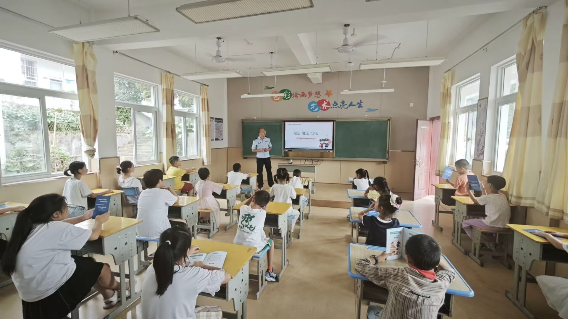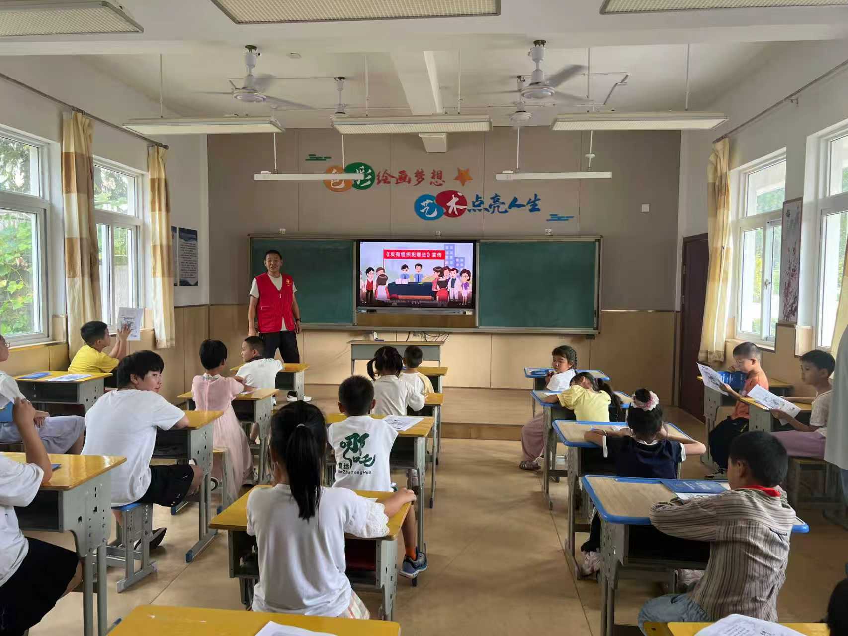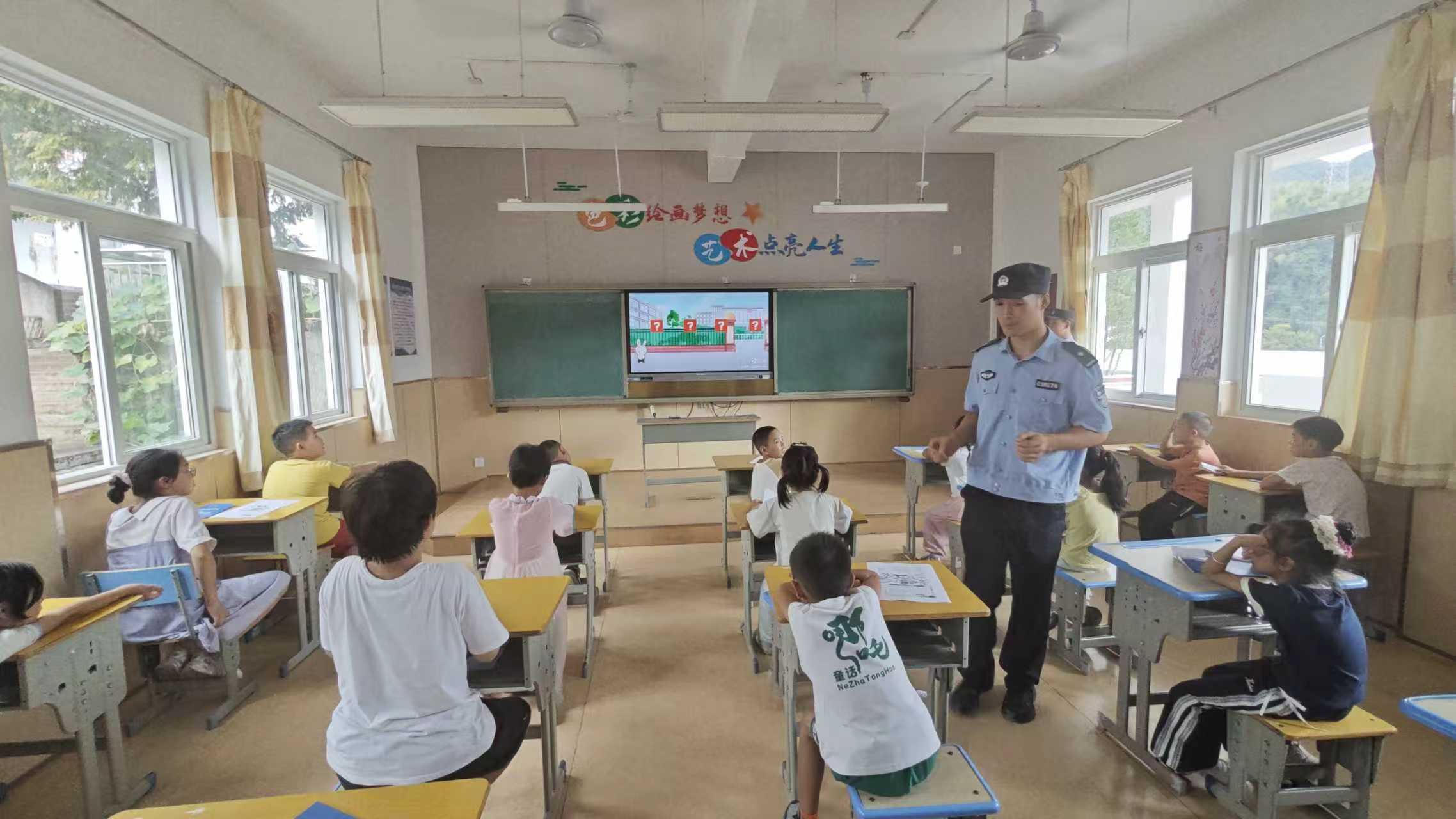 “我们联合乡政府、公安等部门工作人员结合学生们的年龄特点和行为习惯开展授课,通过播放教育视频、发放宣传手册和讲述具体案例的形式,开展了国家安全教育、‘扫黄打非’‘扫黑除恶’、反诈反邪和道路交通安全等宣传教育活动,并利用互动问答环节,引导学生主动思考如何在日常学习生活中同违规违法行为作斗争,进一步增强未成年人自我防范和安全意识。”洪星乡中心小学程老师介绍道。