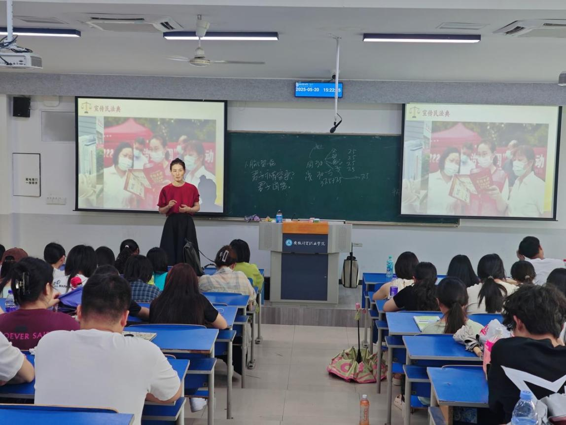 提升师生民法素质。2024年5月20日,为进一步做好新时代人民权益的“百科全书”的普及与宣传工作,马克思主义学院围绕本次民法典宣传月主题——“美好生活·民法典相伴”组织开展了相关活动。活动邀请合肥市政协委员魏磊副教授作为主讲嘉宾,为师生们进行专题法律讲座。魏磊首先回顾了民法典的诞生历程,从立法背景、制定过程到实施意义,并结合具体案例,与现场师生进行积极互动,深入浅出地讲解了民法典的适用原则和条款规定,使抽象的法条变得生动而具体。现场气氛热烈,反响强烈,充分展示了师生们对法治教育的热情和支持。2025年5月20日,魏磊再次以“法”在身边“典”亮生活为主题,为在校学生讲解民法典。从1902年沈家本修订《大清民律草案》,到1987年颁布《中华人民共和国民法通则》,再到2020年颁布《中华人民共和国民法典》,魏磊带领大家一起回看民事相关法律的历史沿革、《中华人民共和国民法典》的诞生及其对社会产生的影响。学生在对我国民法相关法律的发展历史梳理的过程中,明确了民事相关法律的发展历程、修订意义,教师通过案例分析,让学生对民法典的相关内容有了更进一步的了解,从而增强了法律意识和法治文化自信。