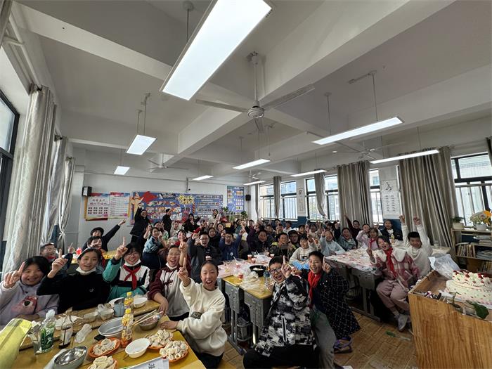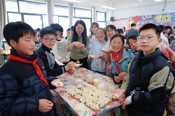 查老师邀请了班里几位同学的家长——几位包饺子的高手,来担任这次活动的“家庭导师”。查老师和几位学生家长系上围裙,和孩子们一起热火朝天地包了起来。教室里充满了欢声笑语,还有面粉飞扬的“战场”。有的孩子包的饺子加入了特制的馅料,有的捏出了好看的花边,还有的孩子发挥自己的想象力用饺子皮和馅做了个迷你“披萨”。教室里,锅碗瓢盆的碰撞声、家长们耐心的指导声、孩子们兴奋的讨论声和此起彼伏的笑声交织在一起,汇成了一首最动听的交响曲。孩子们不仅学会了一项生活技能,更在与父母、祖辈的亲密互动中,感受到了浓浓的亲情与关爱。