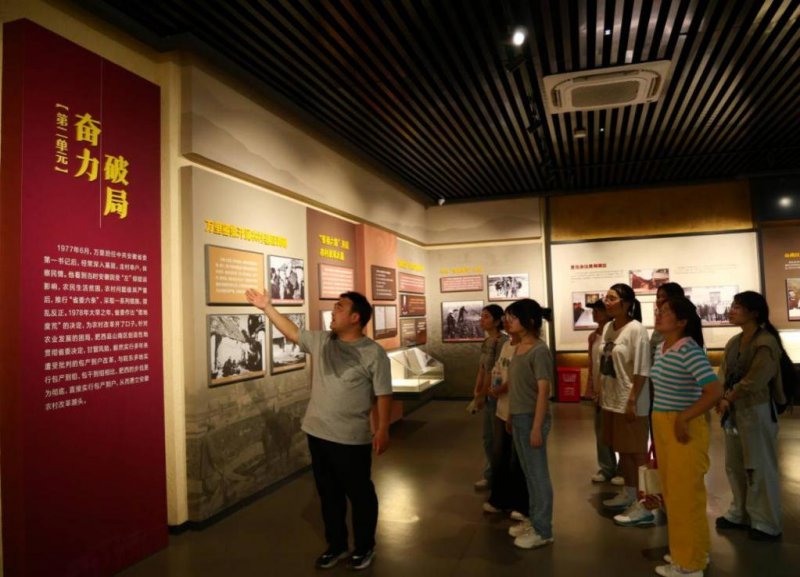 今年暑期,马克思主义学院开展的“三下乡”社会实践活动,覆盖肥西县山南镇长庄村、铭传乡等多个乡村,形成了“现场参观+问题调研+成果汇报”的闭环教学模式。“小井庄的‘红手印’告诉我们,改革是拼出来的!”在肥西县小井庄改革纪念馆,学生们看着1978年农民分田到户的珍贵照片,深刻体会到“敢为人先”的改革精神。作为“中国农村包产到户第一村”,小井庄是学院“行走的思政课”的重要站点——师生们在这里聆听“改革先锋”的后代讲述往事,在田间地头调研乡村振兴的新实践,将“中国式现代化”的理论课堂搬到了改革发源地。