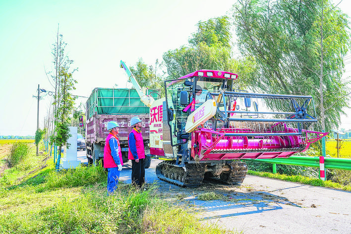 “今年我们种了3000多亩水稻,平均亩产能到600公斤以上。”站在田埂上,南溪生态园农业有限公司生产主管薛伦高兴地说道。10月以来合肥地区雨水偏多,在农机专家的指导下,他们采用高效作业方式,秋收效率提升了近三成。