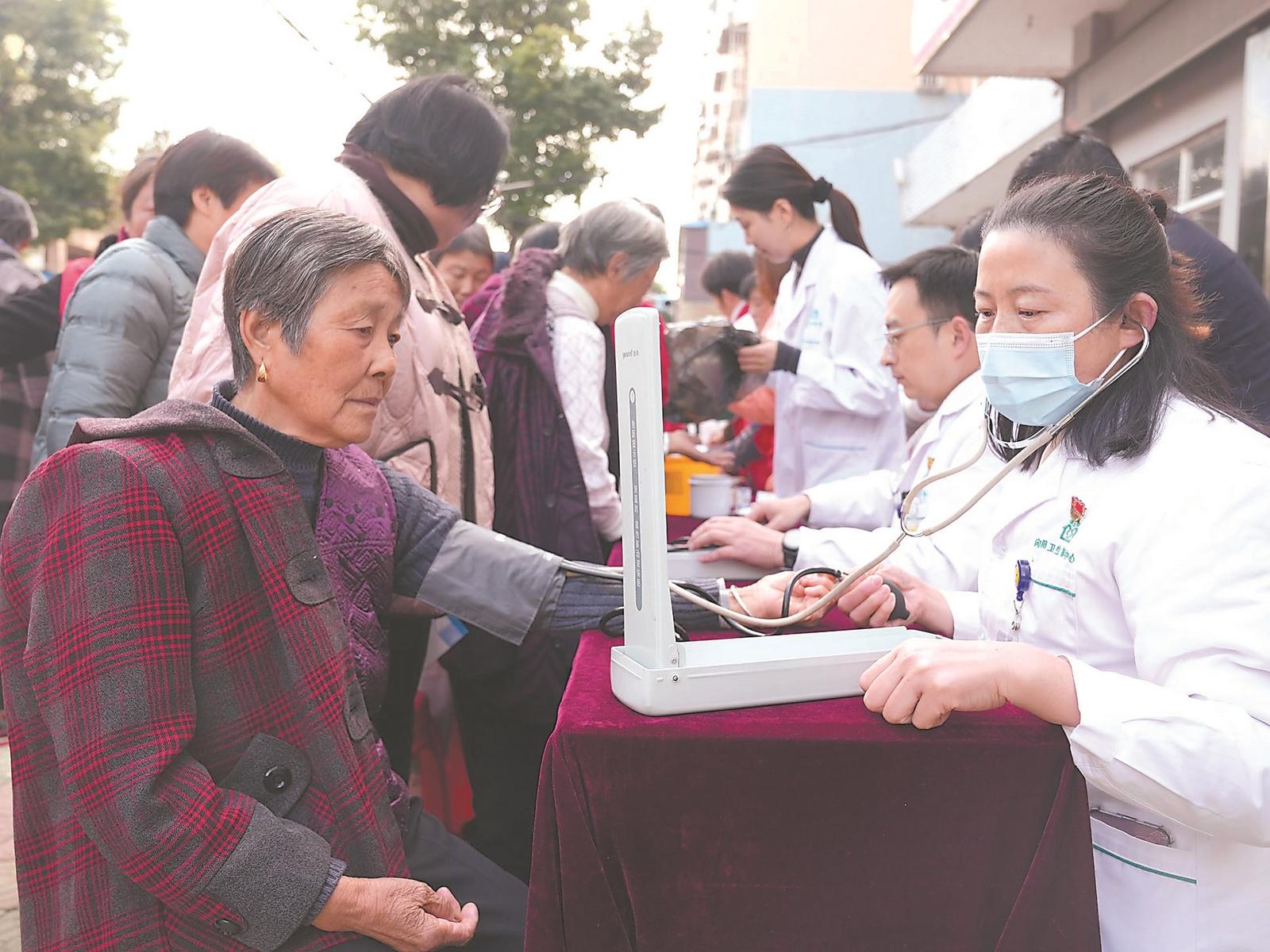12月4日,枞阳县红十字会联合新华社区在街头开展义务理发、健康义诊、急救培训等多项志愿服务活动,受到群众欢迎。通讯员 王章志 摄