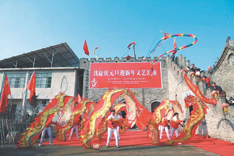 12月27日,宿州市埇桥区符离镇沈圩民俗文化馆广场上锣鼓喧天,歌舞飞扬,一场“金蛇狂舞庆元旦 骏马奔驰迎新年”文艺汇演在这里火热进行。通讯员 张成伍 赵龙艳 摄