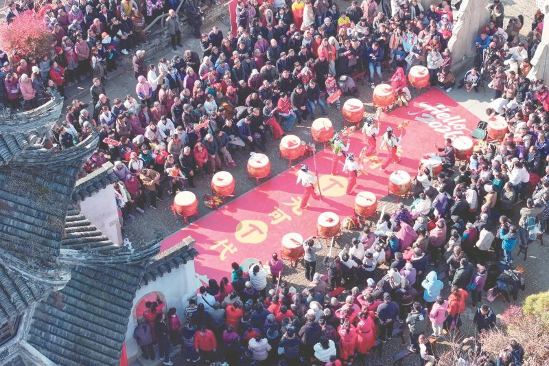 12月28日,“许村有T 无可T代”2025歙县“村T”才艺秀在黄山市歙县许村镇精彩上演,当地农民演示各种农耕劳动场景,迎接新年的到来。通讯员 樊成柱 摄