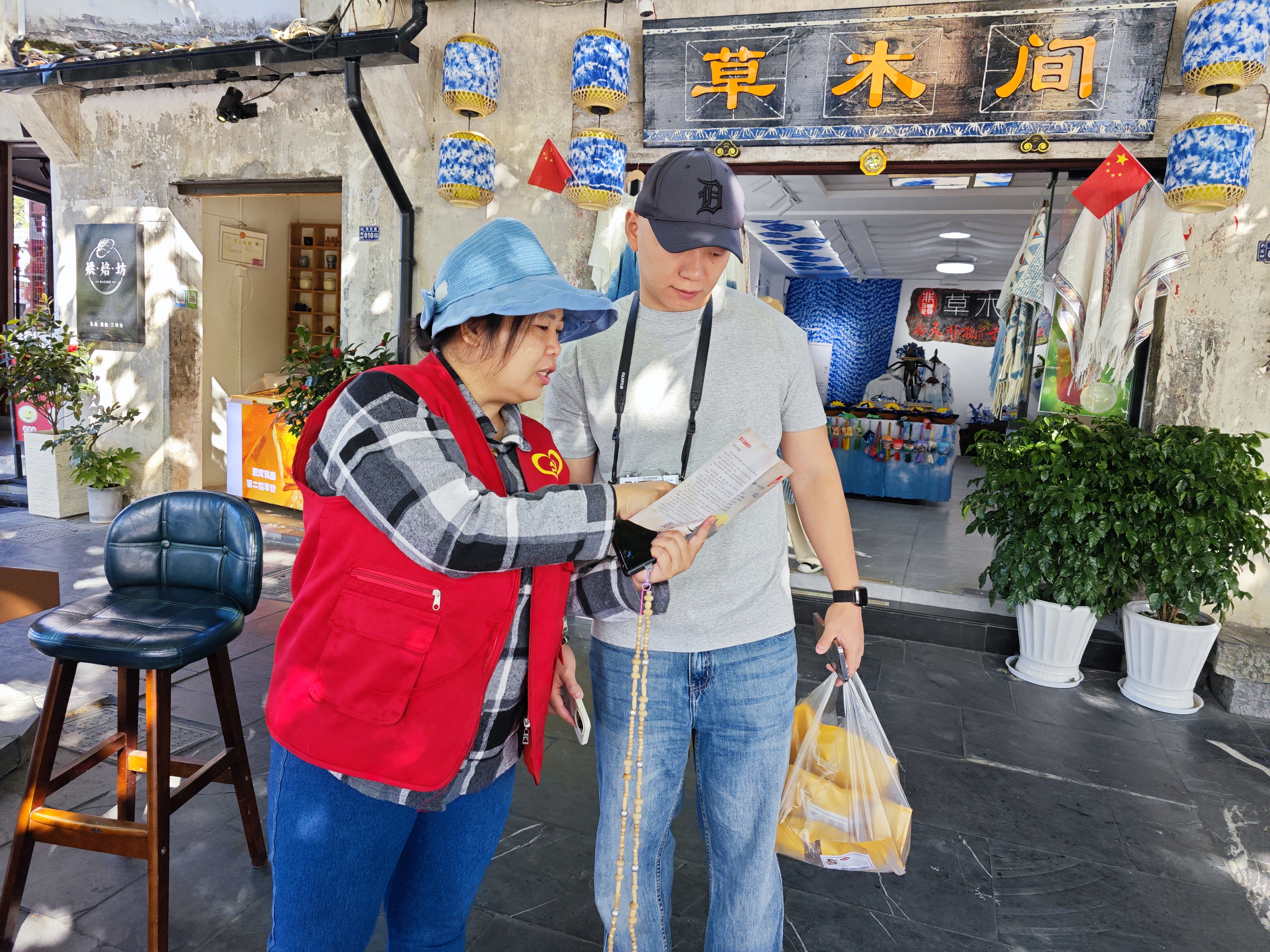 全要素用心保障。为确保假期文化旅游市场安全平稳运行,黟县组建“大黟山”全域旅游志愿服务专班,文旅、市监、公安、交通、应急等5大部门全员上班、全员在岗,化身为特色志愿服务队伍,下沉到文旅一线,全要素用心做好全县文旅综合保障工作。
