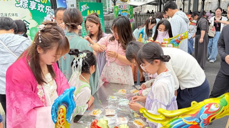 新国线换乘中心等地成为端午民俗互动核心区。投壶竞技作为亮点项目,吸引众多游客一试身手,自制艾草香囊、趣味钓粽子、射五毒、点额祈福等活动集中呈现,让游客在体验与趣味互动中,深度感受端午习俗的活力与乐趣。