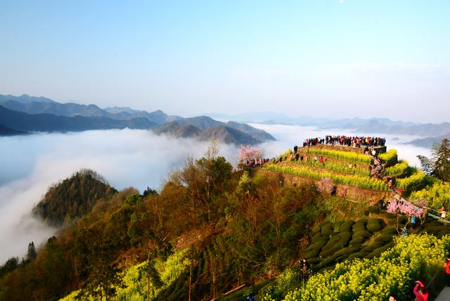 多点开花兴产业,激活发展动能。石潭村坐拥漫山油菜花,春日花海与云海、古民居相偎相依,绝美画卷引得游客如潮,村庄顺势而为发展乡村旅游。一年多来,旅游新业态次第开花:云端咖啡馆凌空出世,凭栏远眺,山色尽收眼底,咖啡香与自然风交融,别具韵味,开业即出圈,成为热门打卡点;“光影石潭”乡土文化展示馆惊艳亮相,集中展销臭鳜鱼、枇杷饮等本地特色伴手礼,供销两旺,油菜花旺季销售额超15万元。农文旅融合大幕拉开,“四季花海”战略稳步推进,金花闹春、葵花争夏、红叶醉秋、寒梅傲冬,月月有景、季季有花,游客流连忘返,从流量变“留”量,“一日游”向“多日游”转变加速。旅游综合收入狂飙突进,2024年突破2000 万元大关,村民腰包鼓鼓,“旅游饭”吃得欢畅,“两山”转化通道越行越宽。